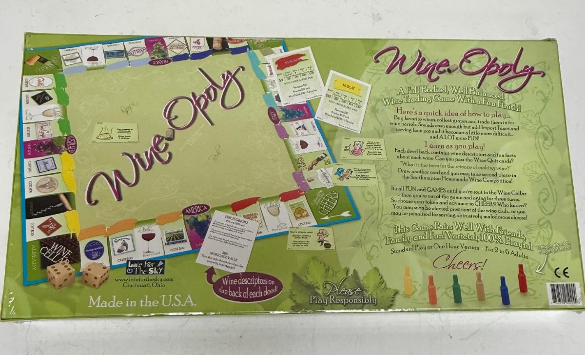 It is a property-trading game similar to Monopoly, but with a wine theme. Players buy favorite wines, collect bunches of grapes, and trade them in for decanters.
