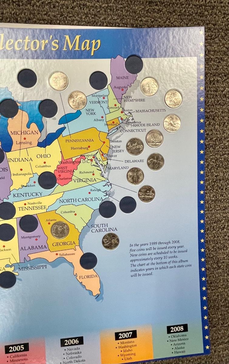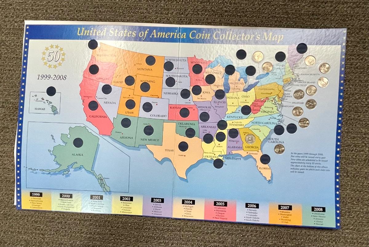 United States of America Coin Collector's Map Quarter Holding Book. In good collectible condition. Already has some (12) of the quarters in place just need to collect the rest.