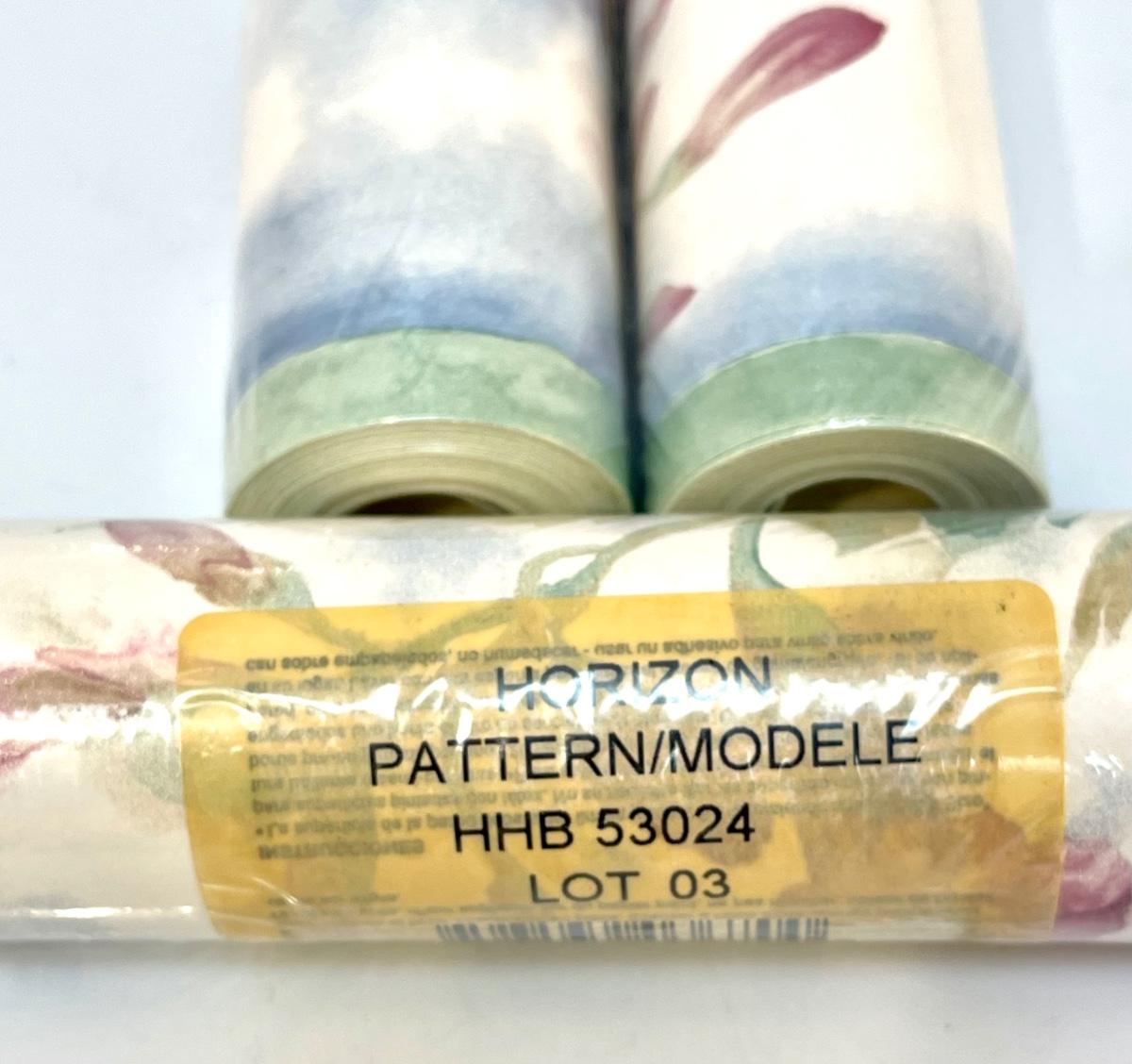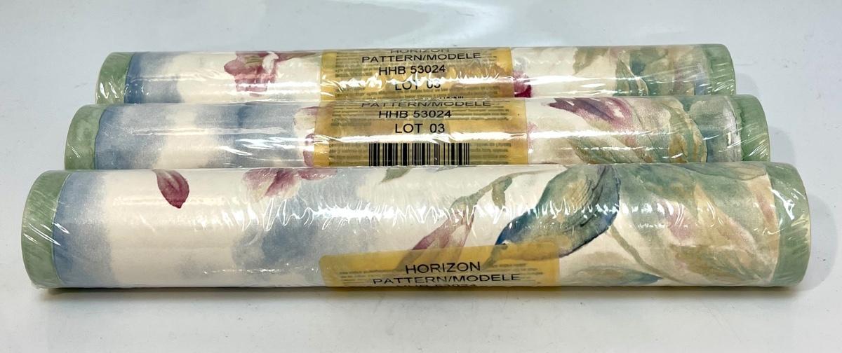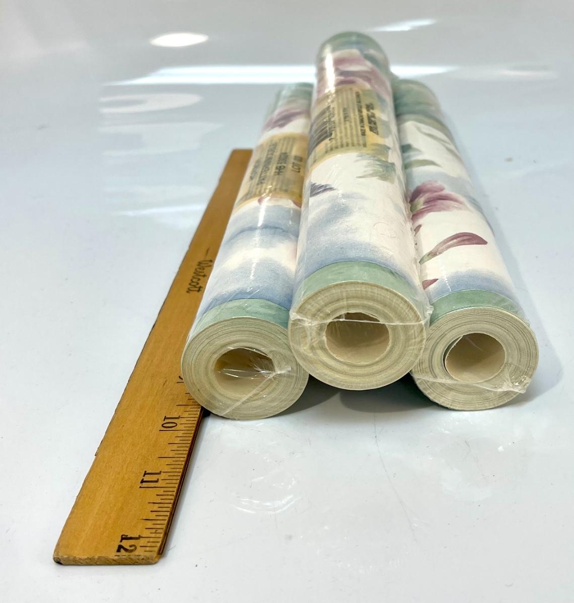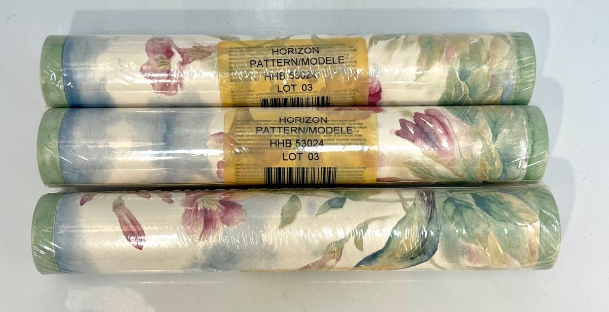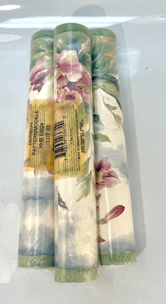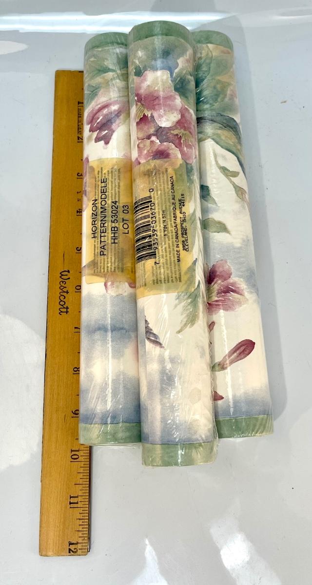 Three Rolls of Watercolor Like Floral Wallpaper Board Trim Unopened
