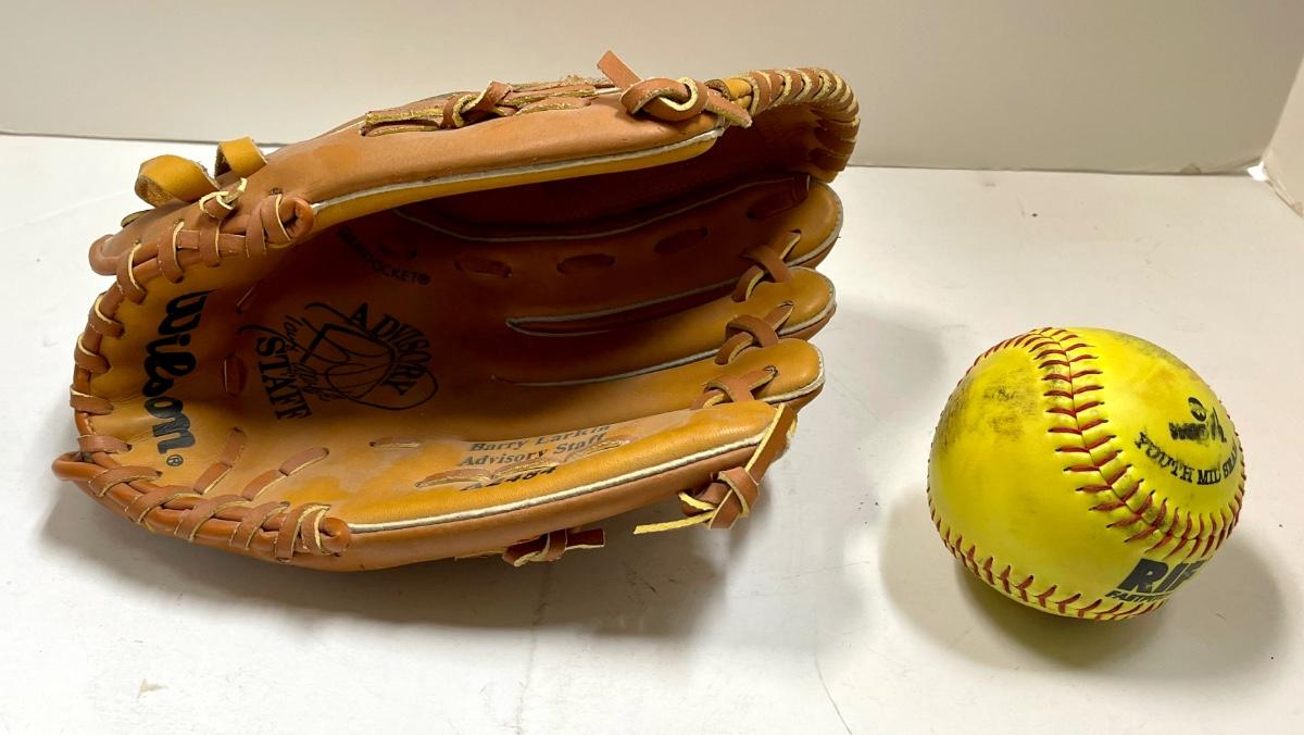 Kids Youth Wilson A2484 Baseball Glove & RIF Fast Pitch Ball Set. Good used condition.