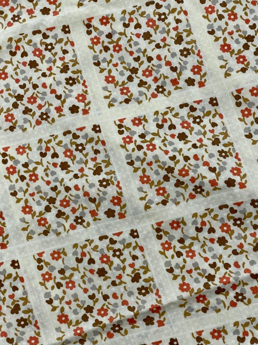 Retro Vintage King Size Flat Sheet Floral Patchwork Warm Tone 70's Colors