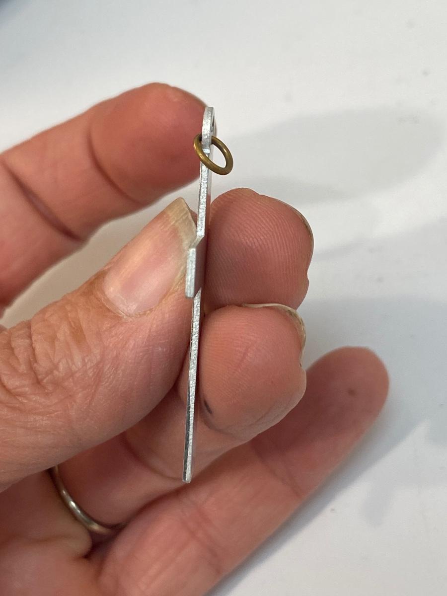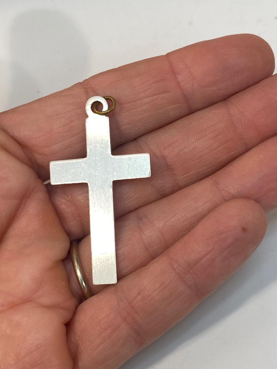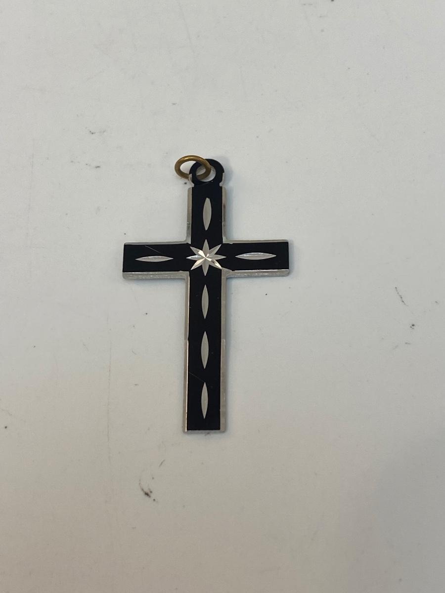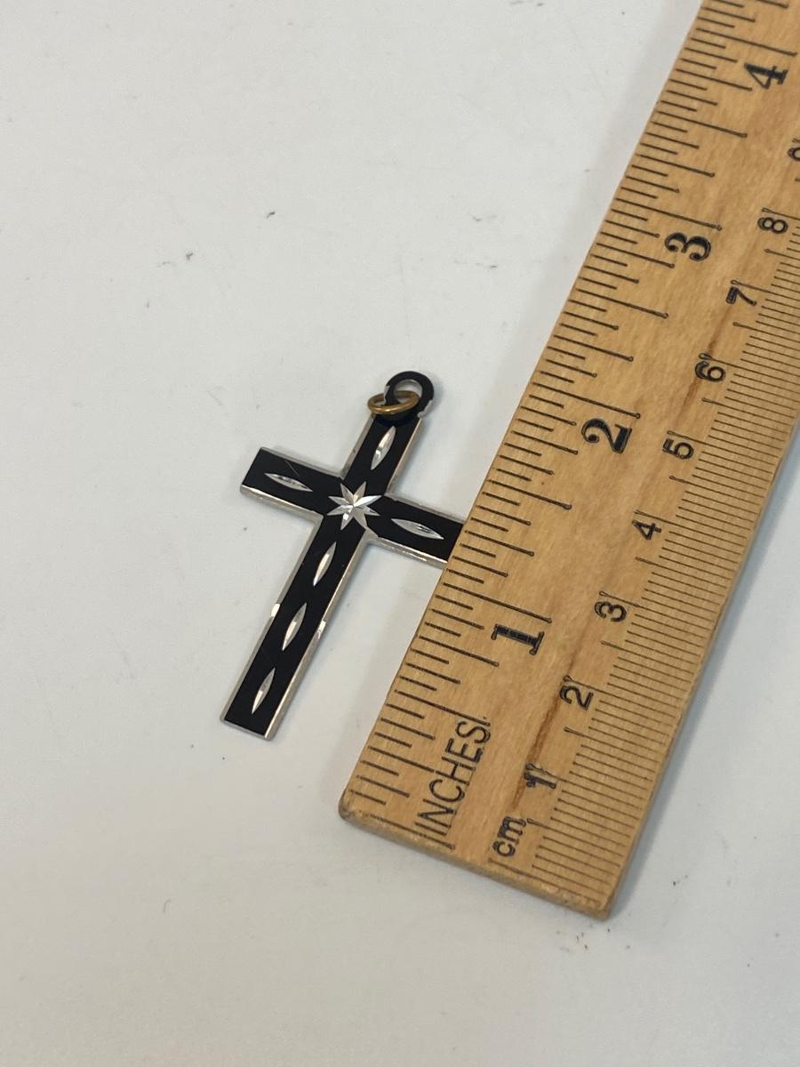Thin Lightweight Silver Tone & Black Etched Cross Pendant Charm. 2" size.