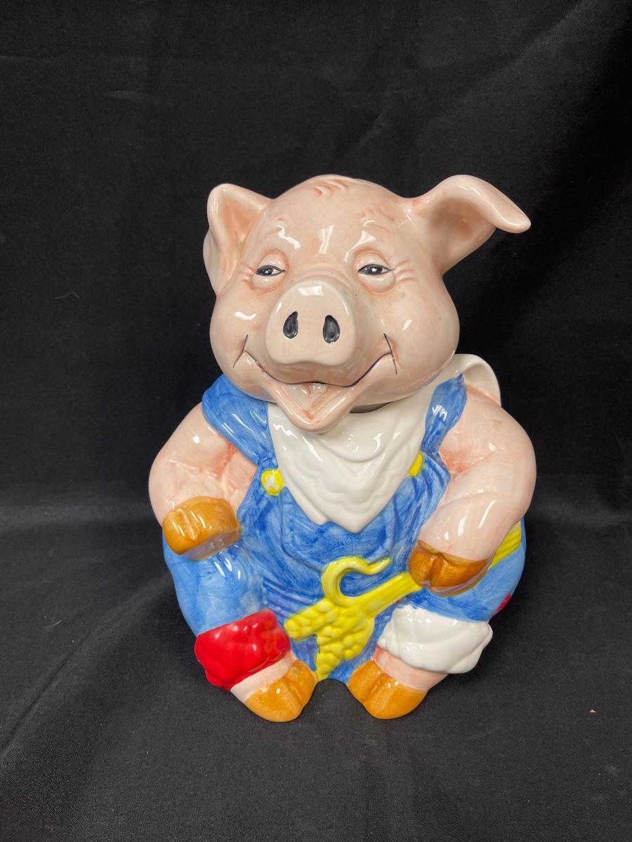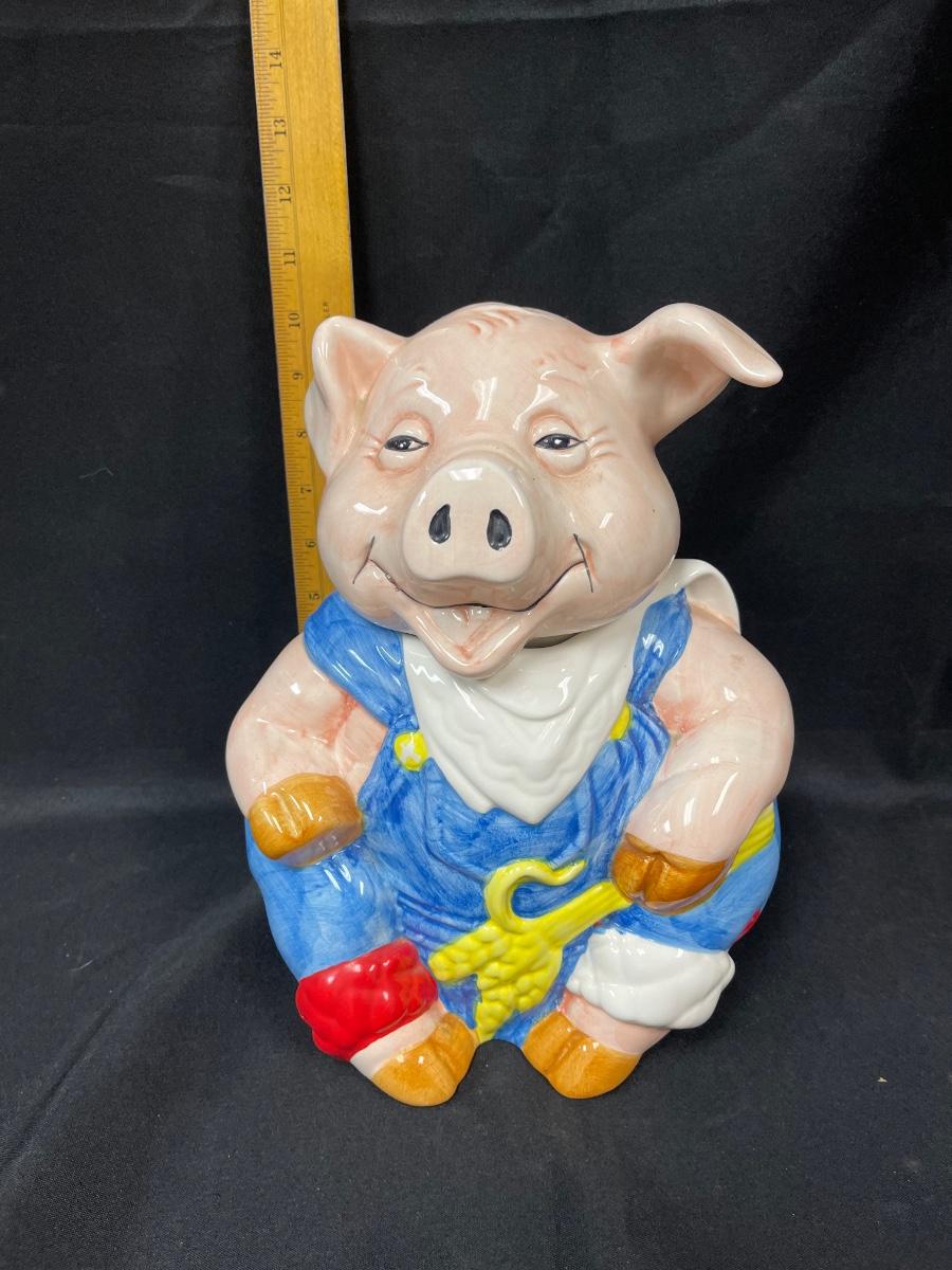 1993 "Farmer Pig" Cookie Jar Ceramic Porcelain Made By Boston Warehouse