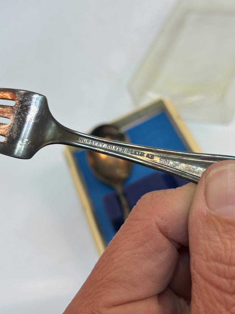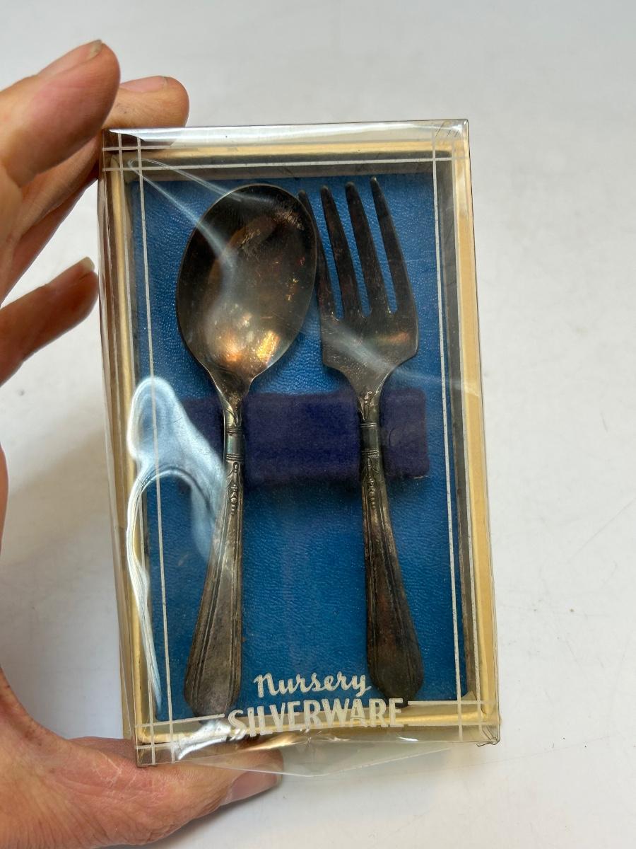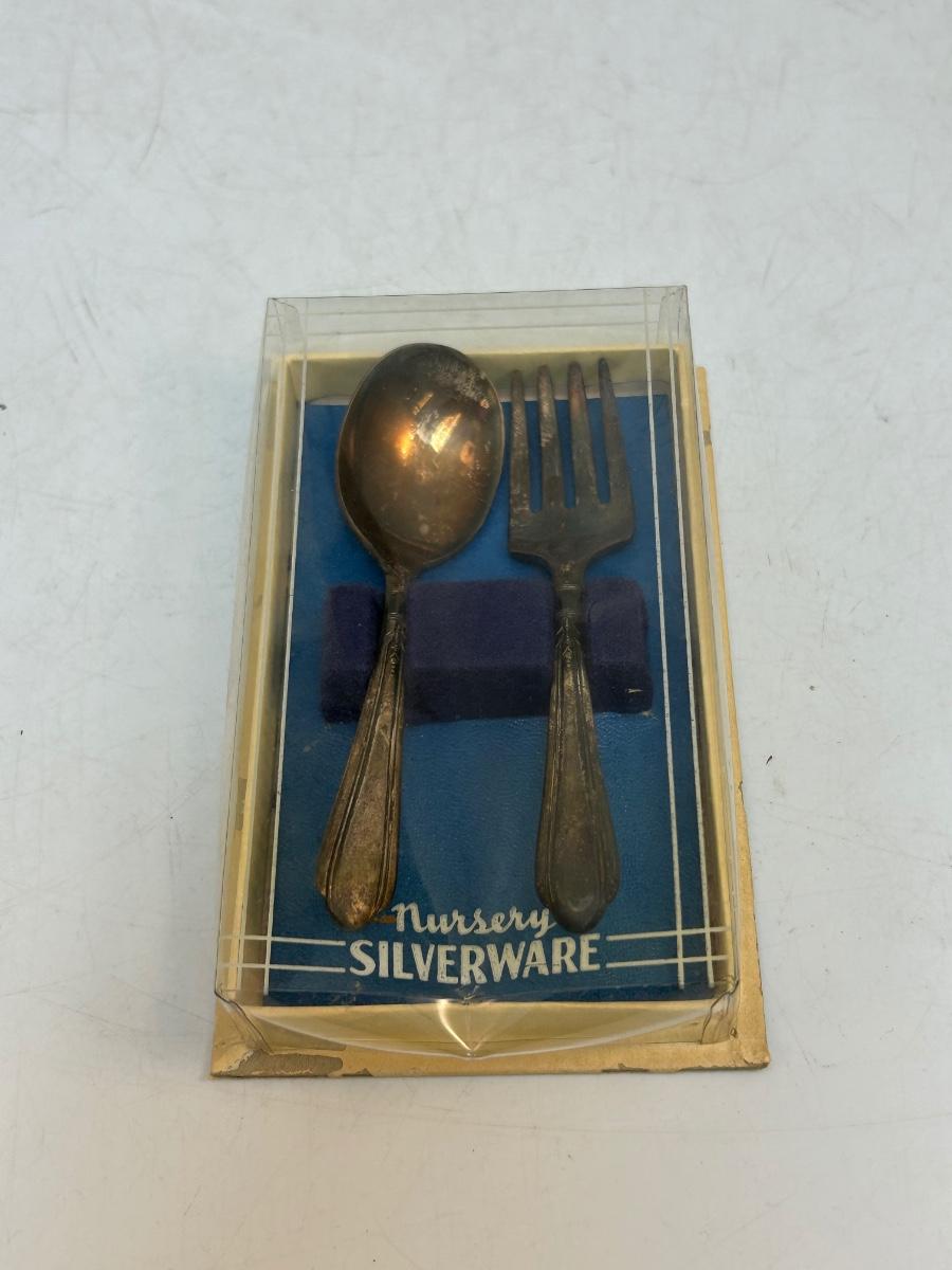 Vintage Silver Plate Nursery Baby Toddler Silverware Set Fork and Spoon