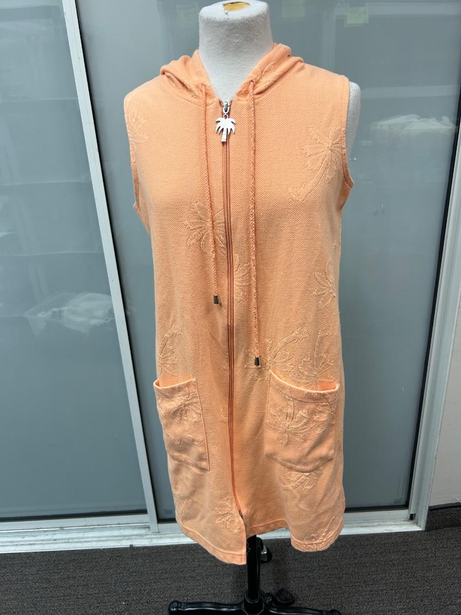 Secret Treasures Sleepwear Orange Palm Tree Pattern Sleeveless Zip Front Cover Up Loungewear. In good condition. Size medium.