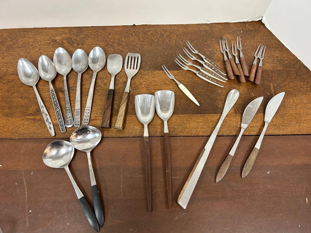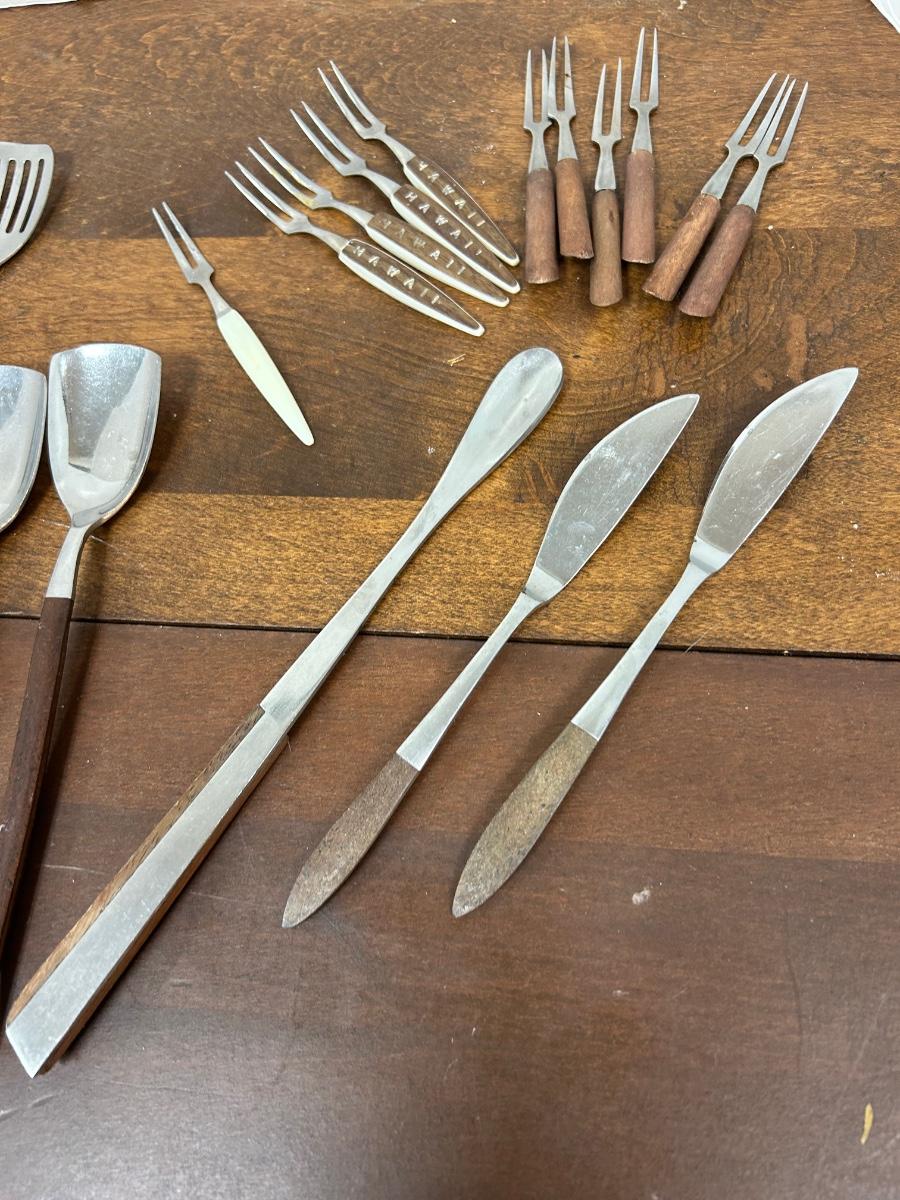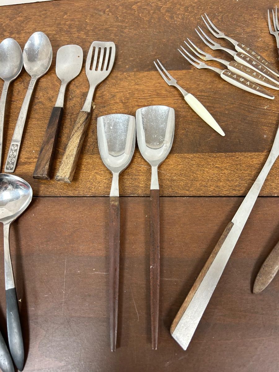 Mixed Lot of Midcentury Vintage Kitchen Utensils Flatware Wood Handles Modern Style