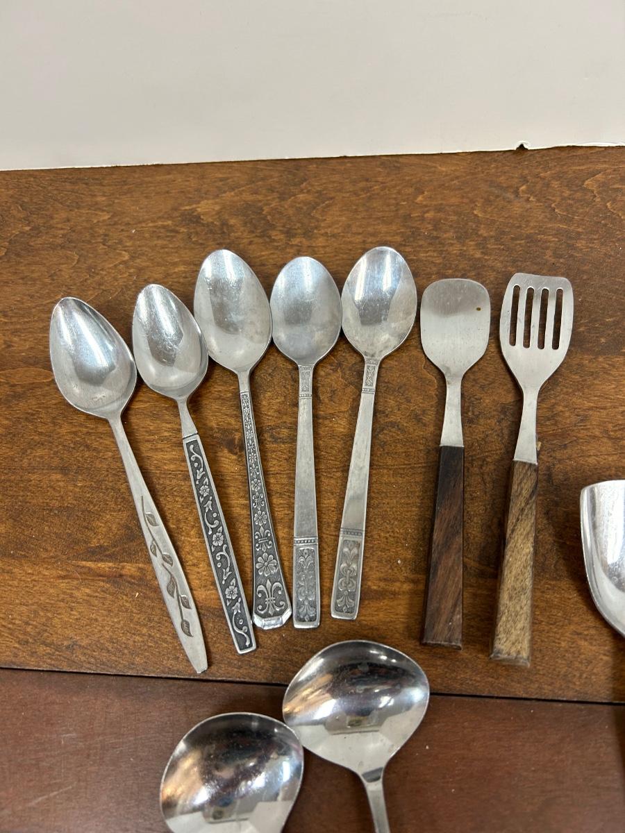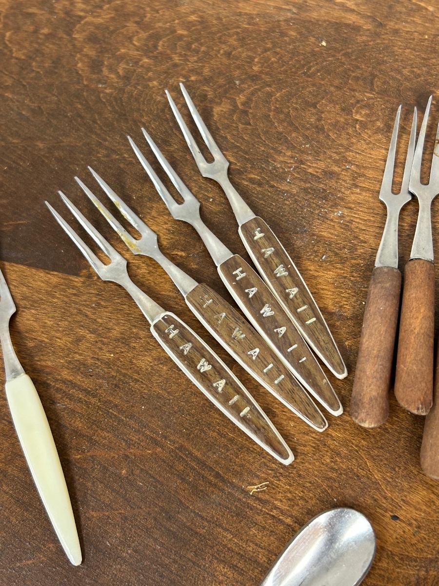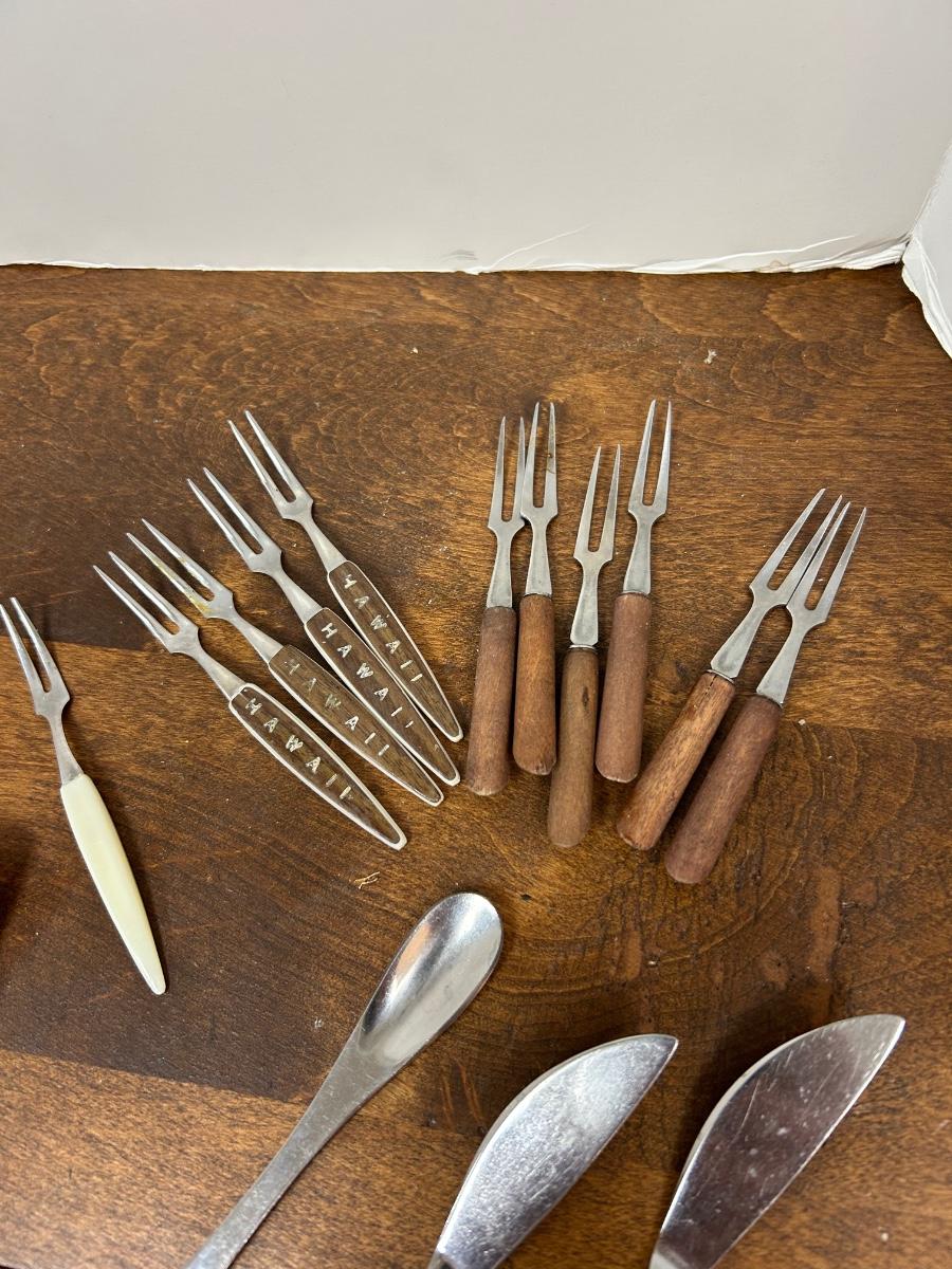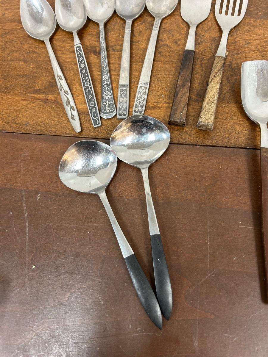 Mixed Lot of Midcentury Vintage Kitchen Utensils Flatware Wood Handles Modern Style