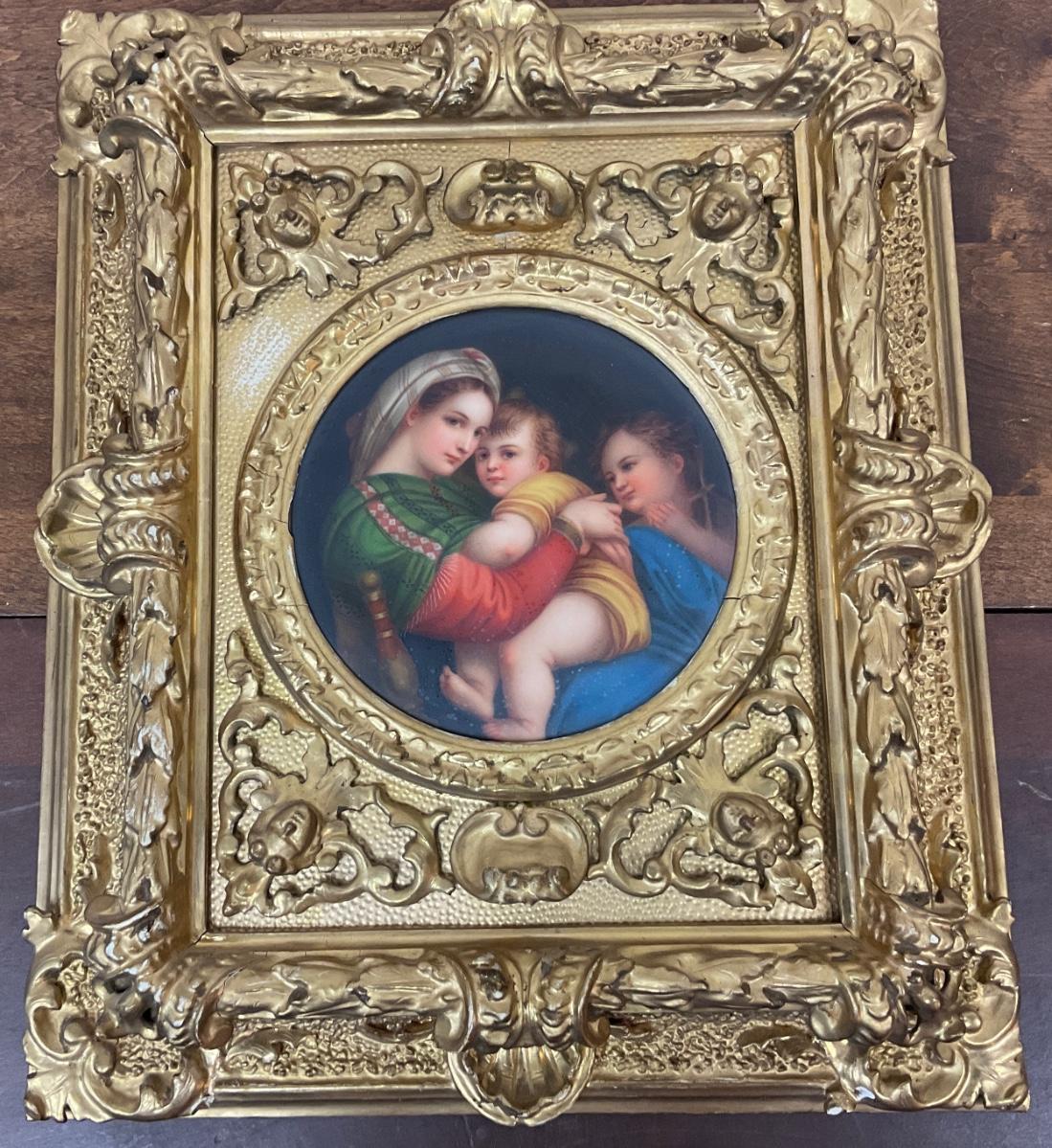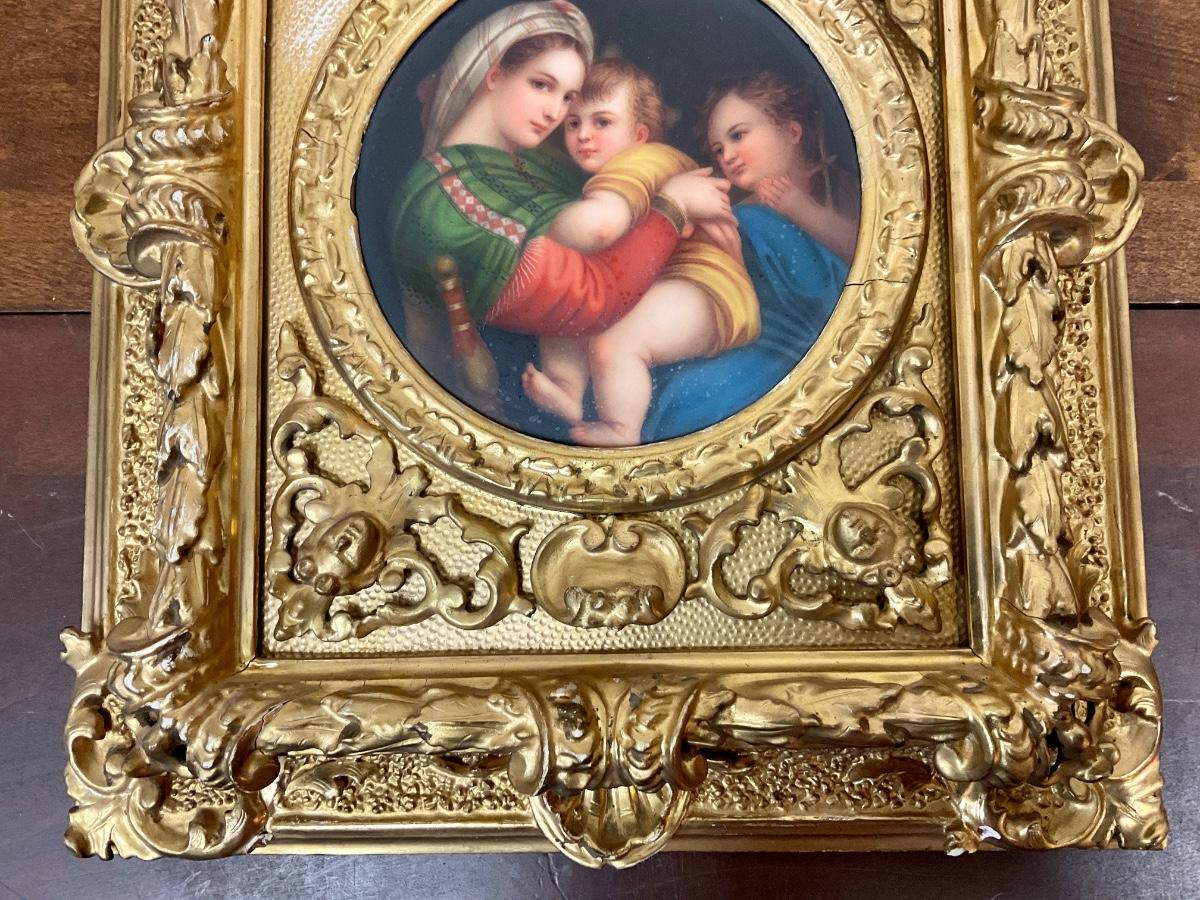 Vintage Ornate Gold Framed Mother and Child After Raphael Madonna of the Chair Wall Hanging Art