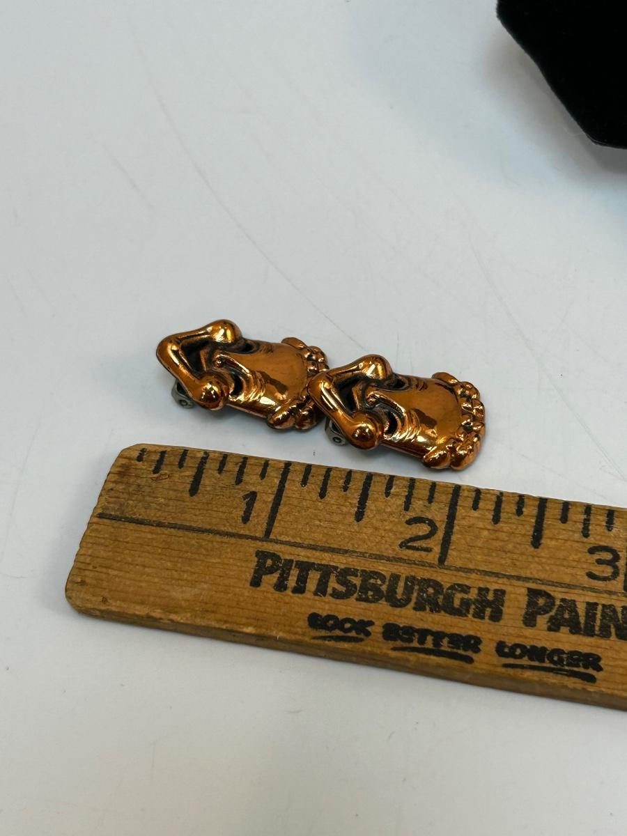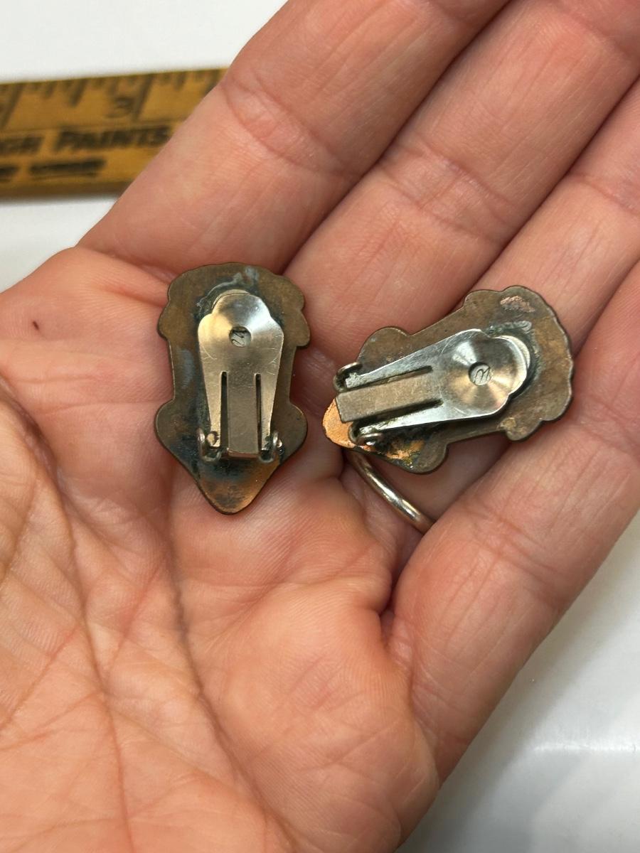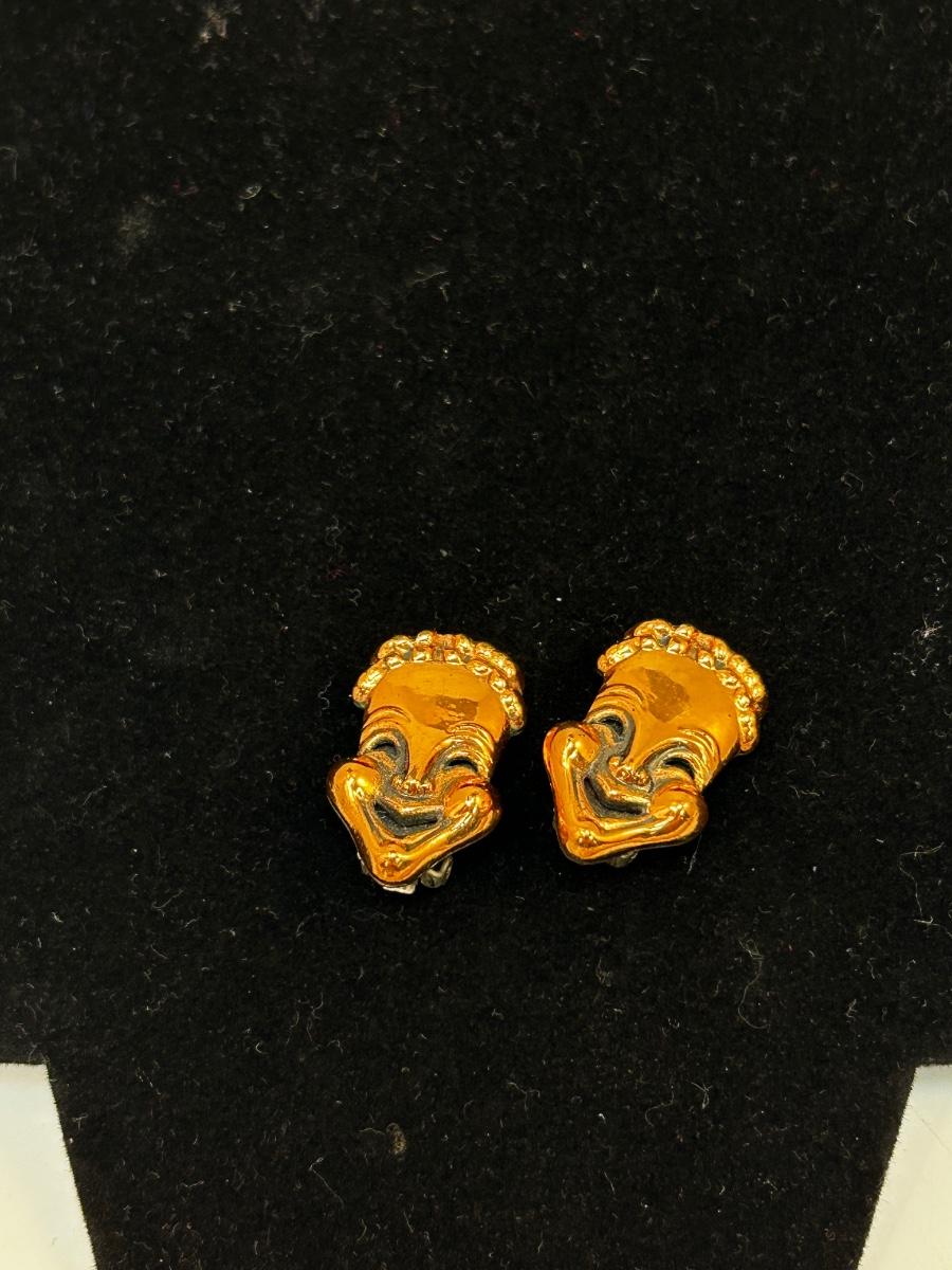 Pair of Vintage Retro Copper Smiling Laughing Theater Mask Clip Style Earrings. Unsigned. In good condition.
