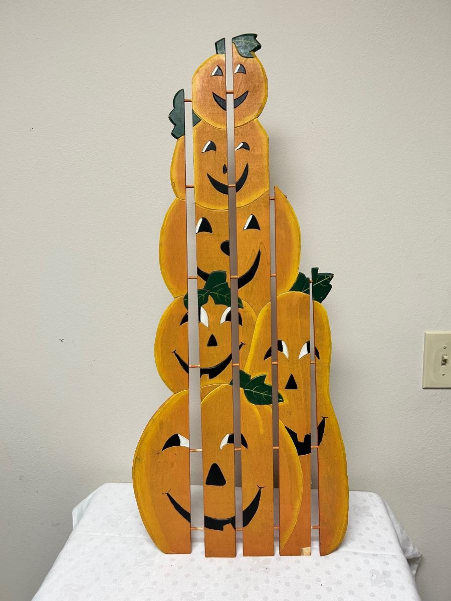 Large Weathered Jack-o-lantern Pumpkin Halloween Painted Wood Yard Garden Porch Decor