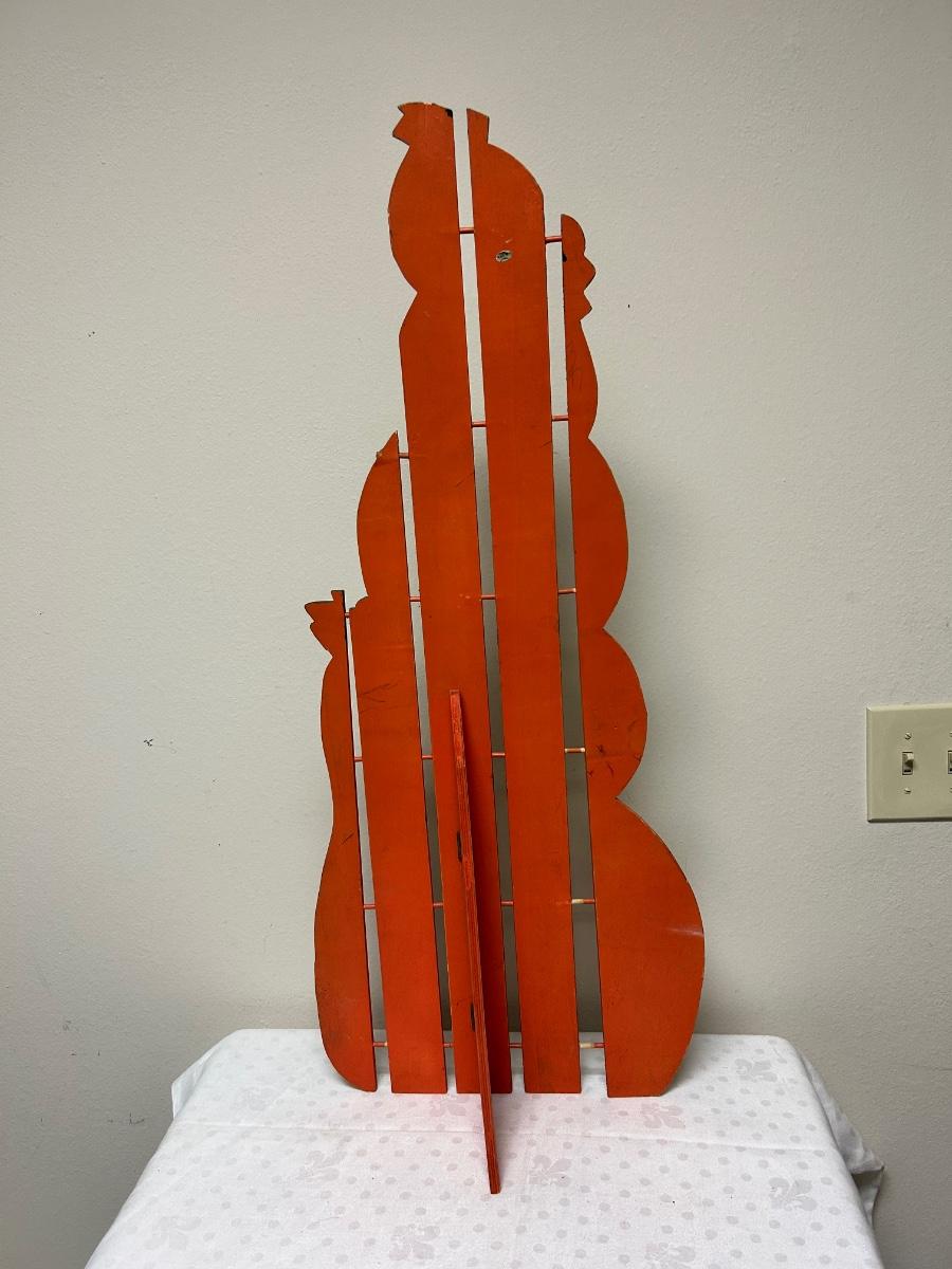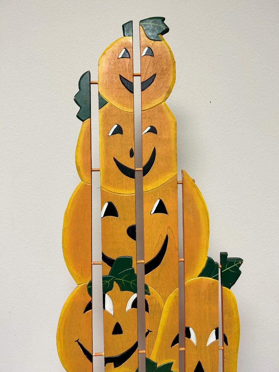 Large Weathered Jack-o-lantern Pumpkin Halloween Painted Wood Yard Garden Porch Decor. In good, weathered condition, light fade from display. About 3' tall