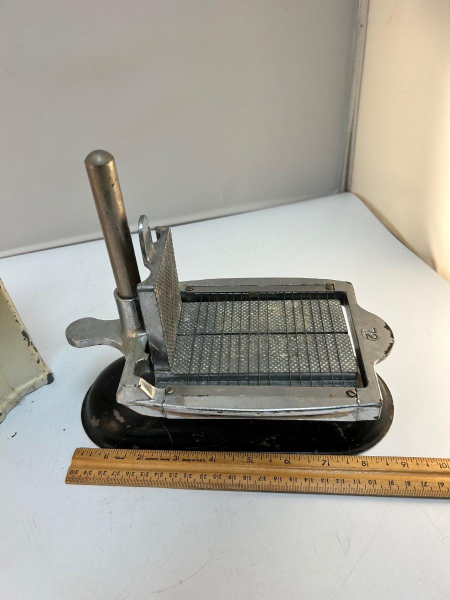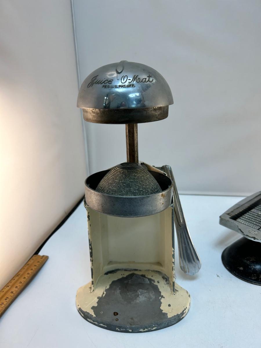 Pair of Vintage Kitchen Gadgets Juicer Cheese Slicer. In vintage condition. Great for display.