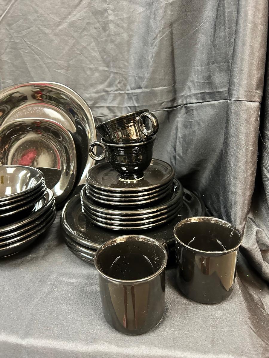 Large Black Dishware Dish Set Plates Bowls Cups Mikasa Moderna Jet Unbranded