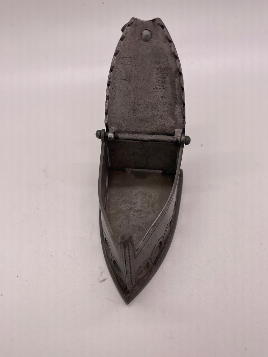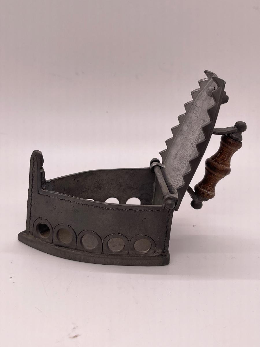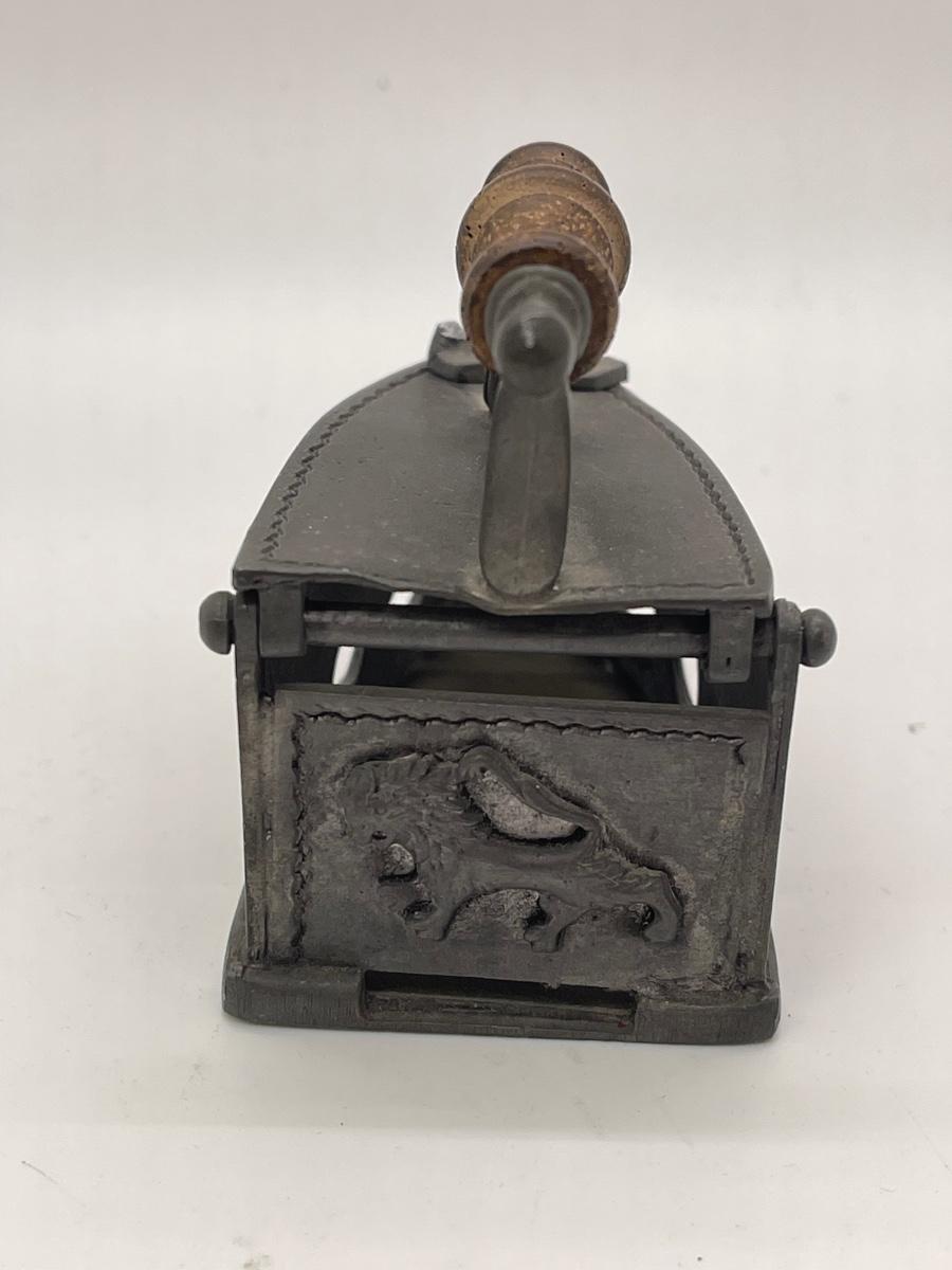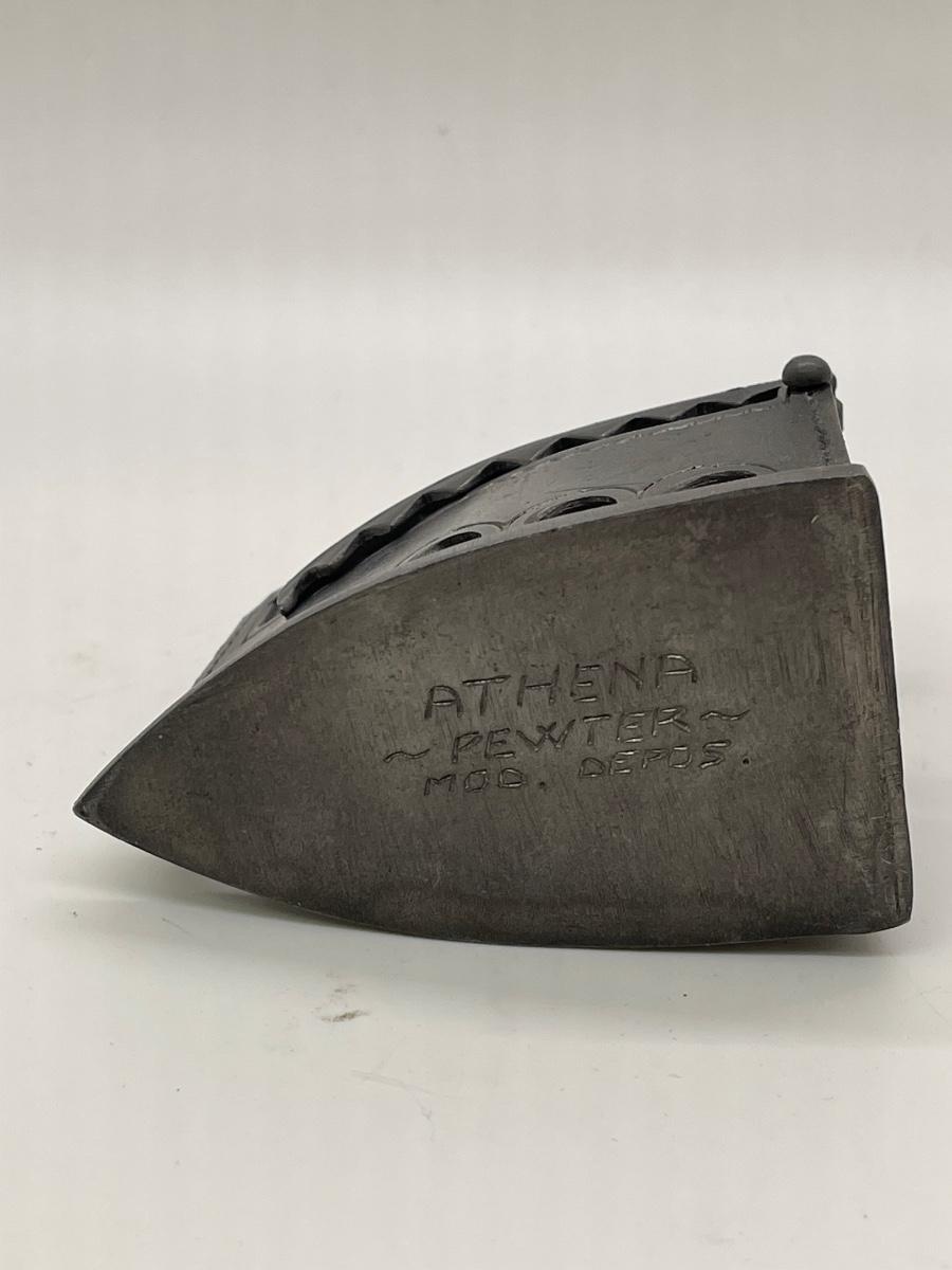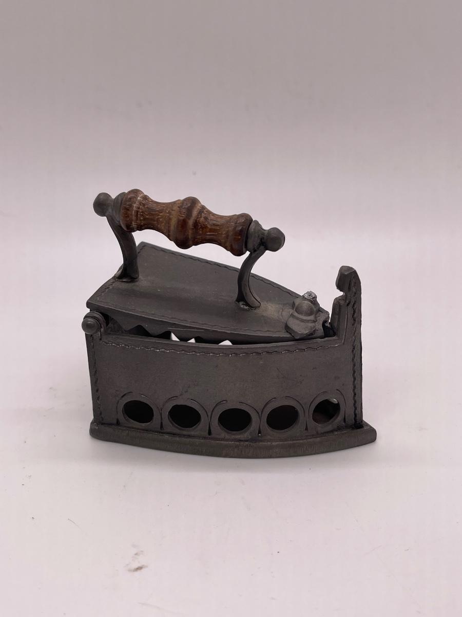 Tiny Victorian Style Pewter Iron with wood handle Athena Mod Depos. Salesman Sample