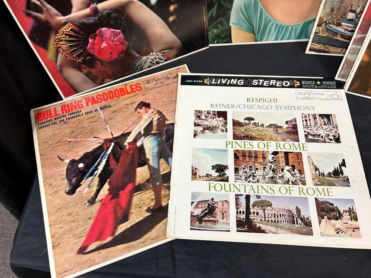 Mixed Lot of Vintage Midcentury Record Albums Foreign Travel Vacation Destinations Paris Spain Ports of Call