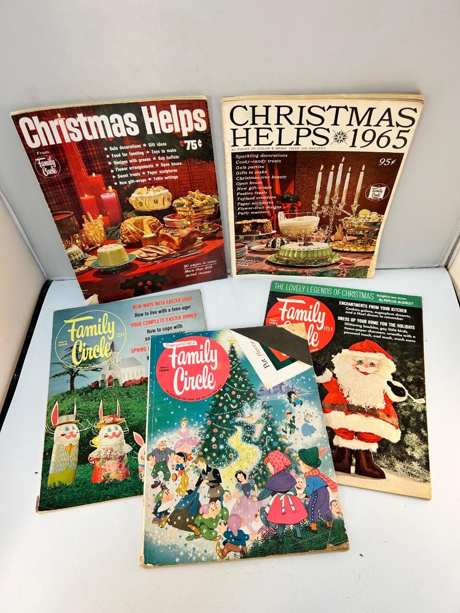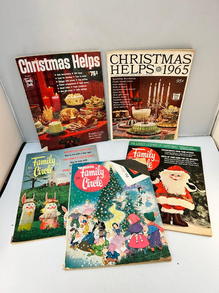 Vintage Midcentury Holiday Issues of Family Circle and Holiday Helps Magazines. In vintage condition. Great selection of vintage ads, recipes, crafts and more.