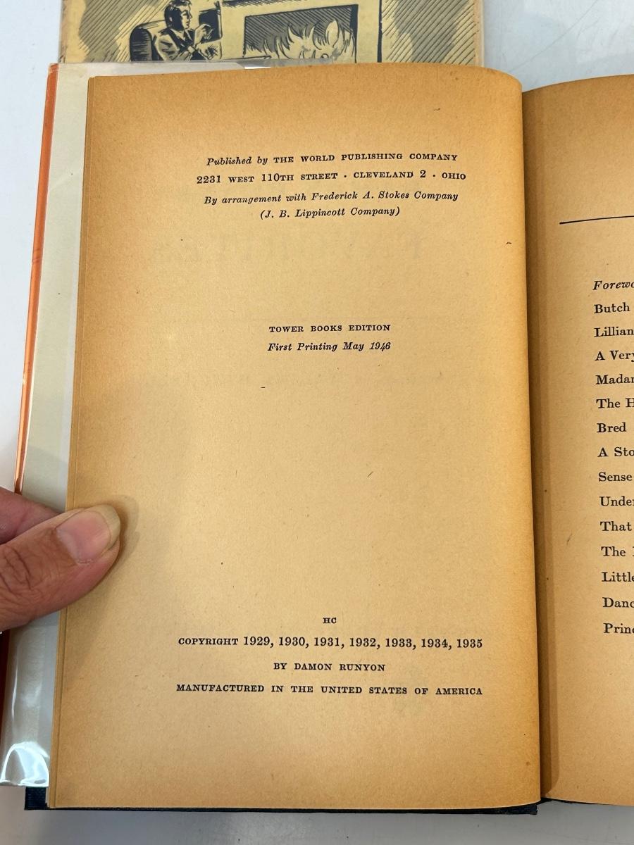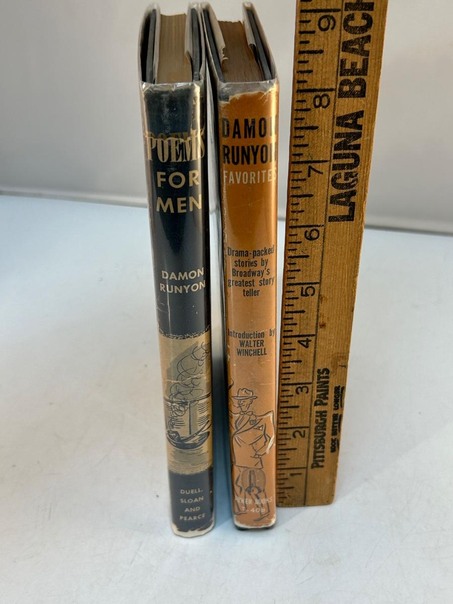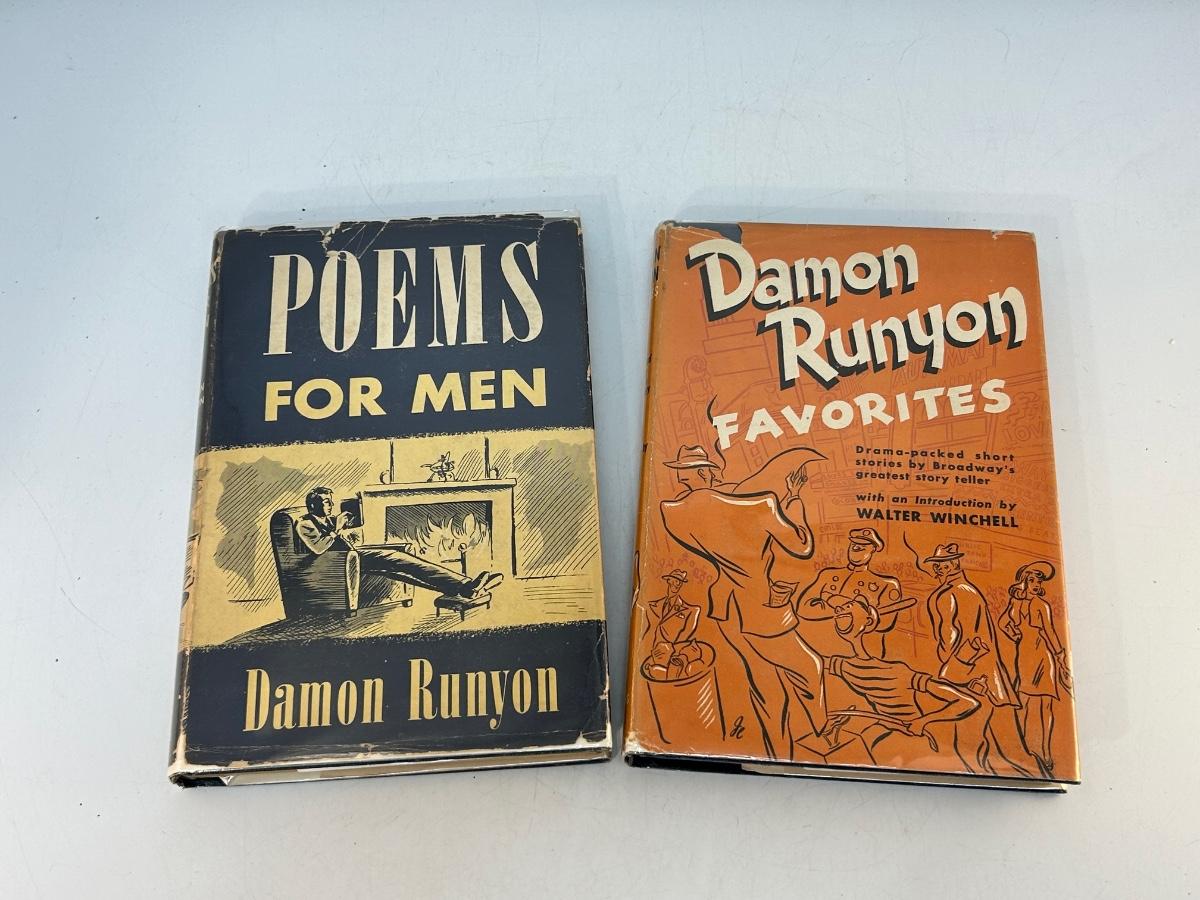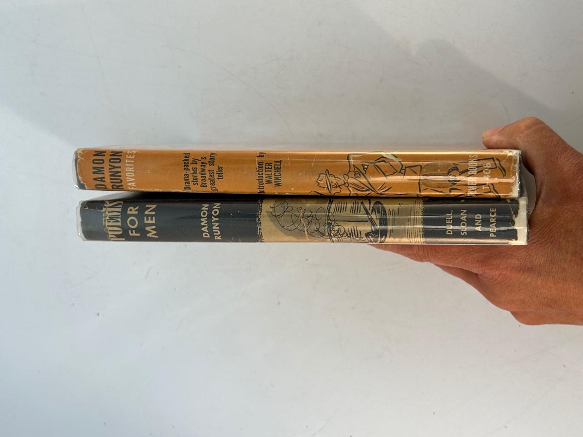 Pair of Vintage Damon Runyon Hardback Books with Dust Jackets Poems for Men & Favorites Dramatic Short Stories. In vintage condition. Light wear to the jackets but they have a plastic like cover to help protect.