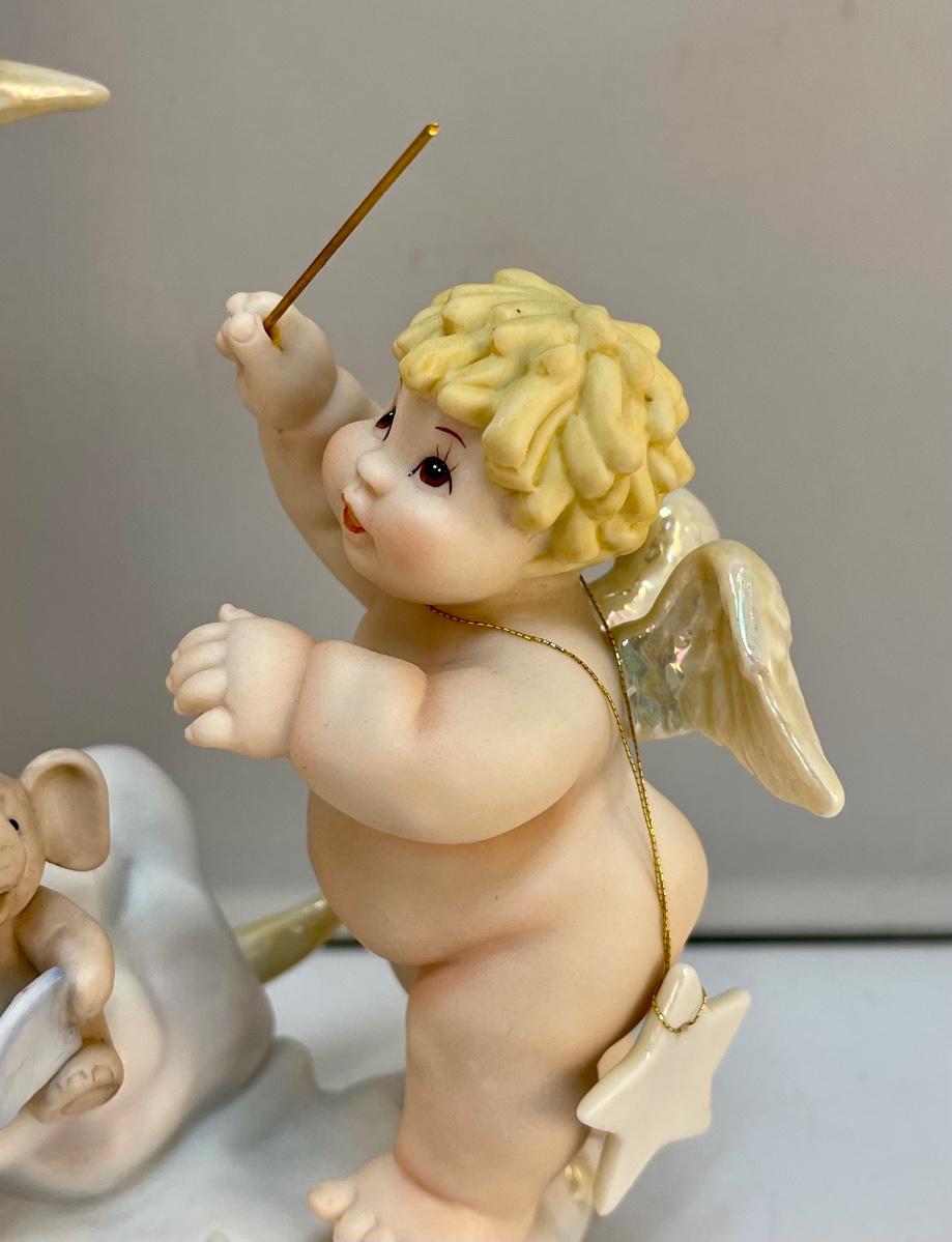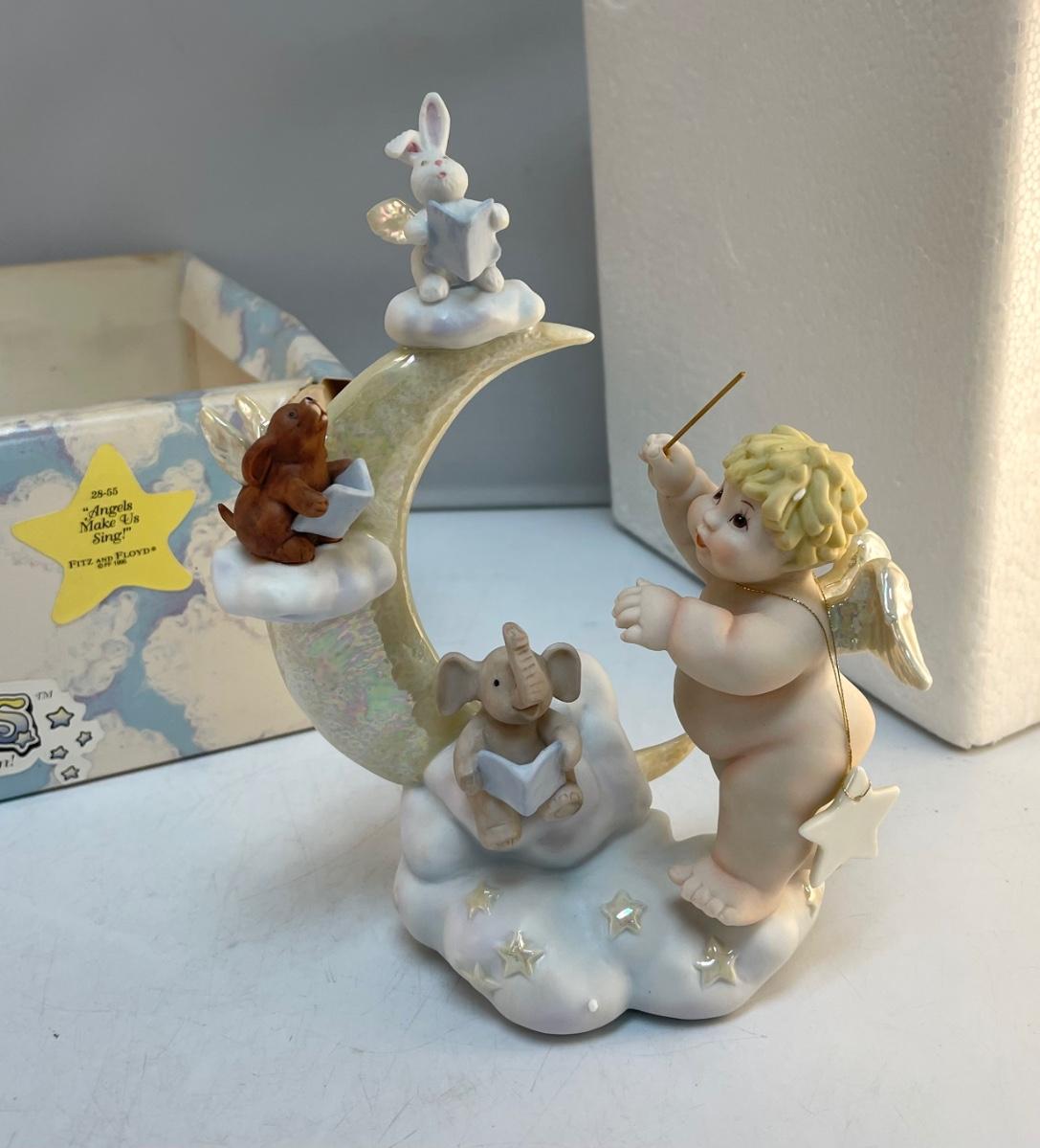 Fitz & Floyd Cute Angel Cherub with Animal Choir on Moon Figurine in Original Box