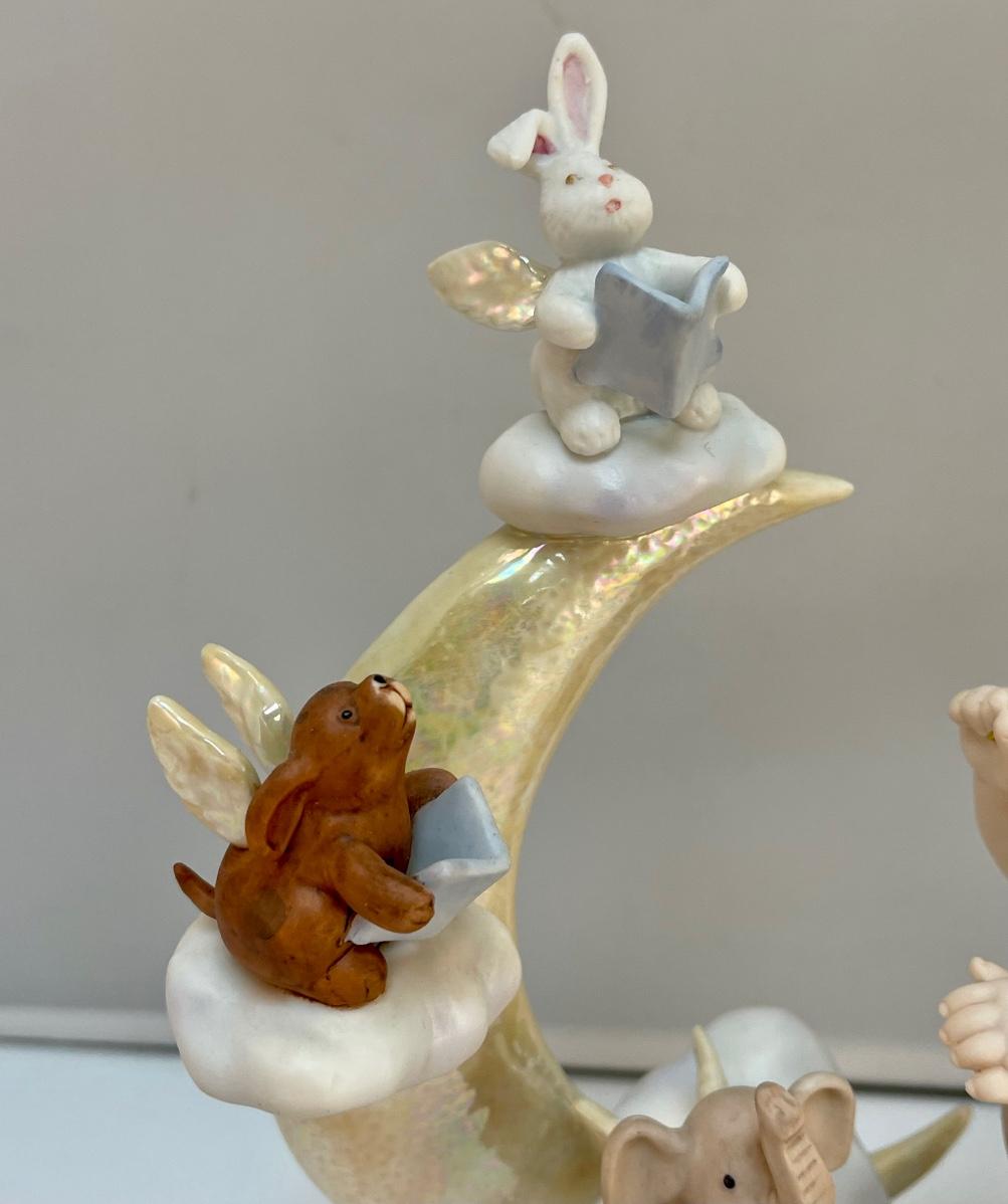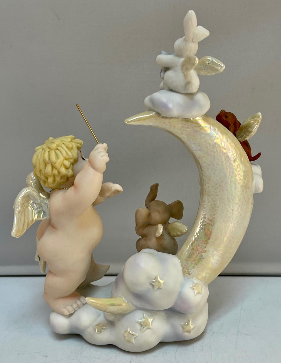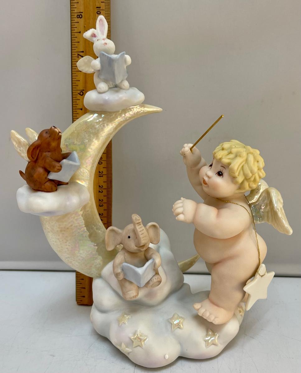 Cute Angel Cherub with Animal Choir on Moon Figurine in Original Box. In good condition.