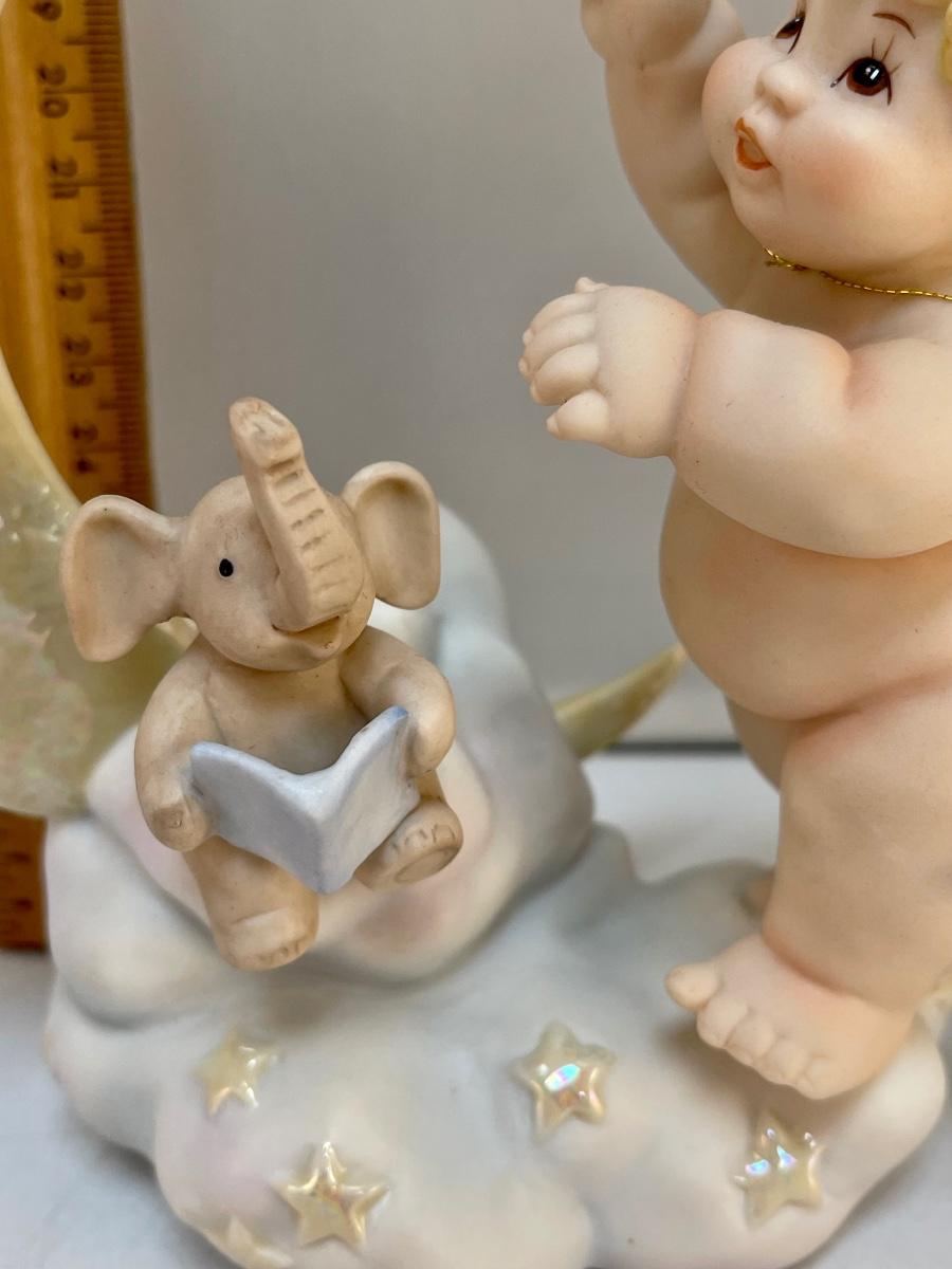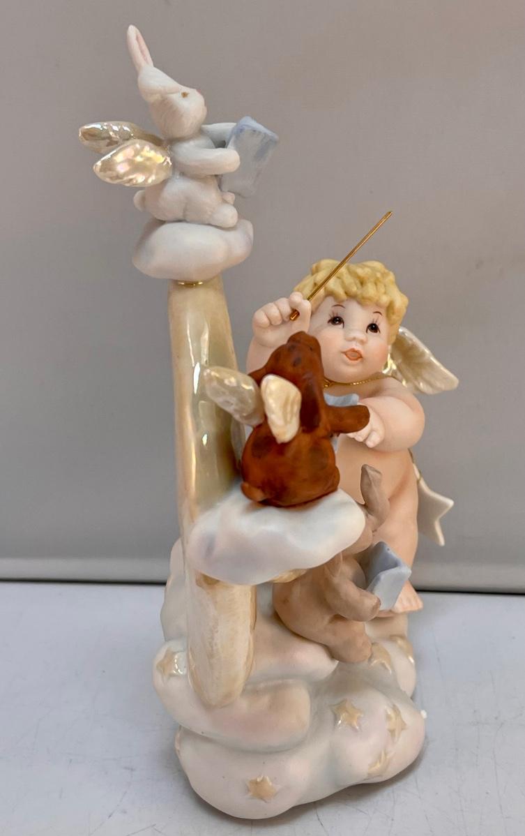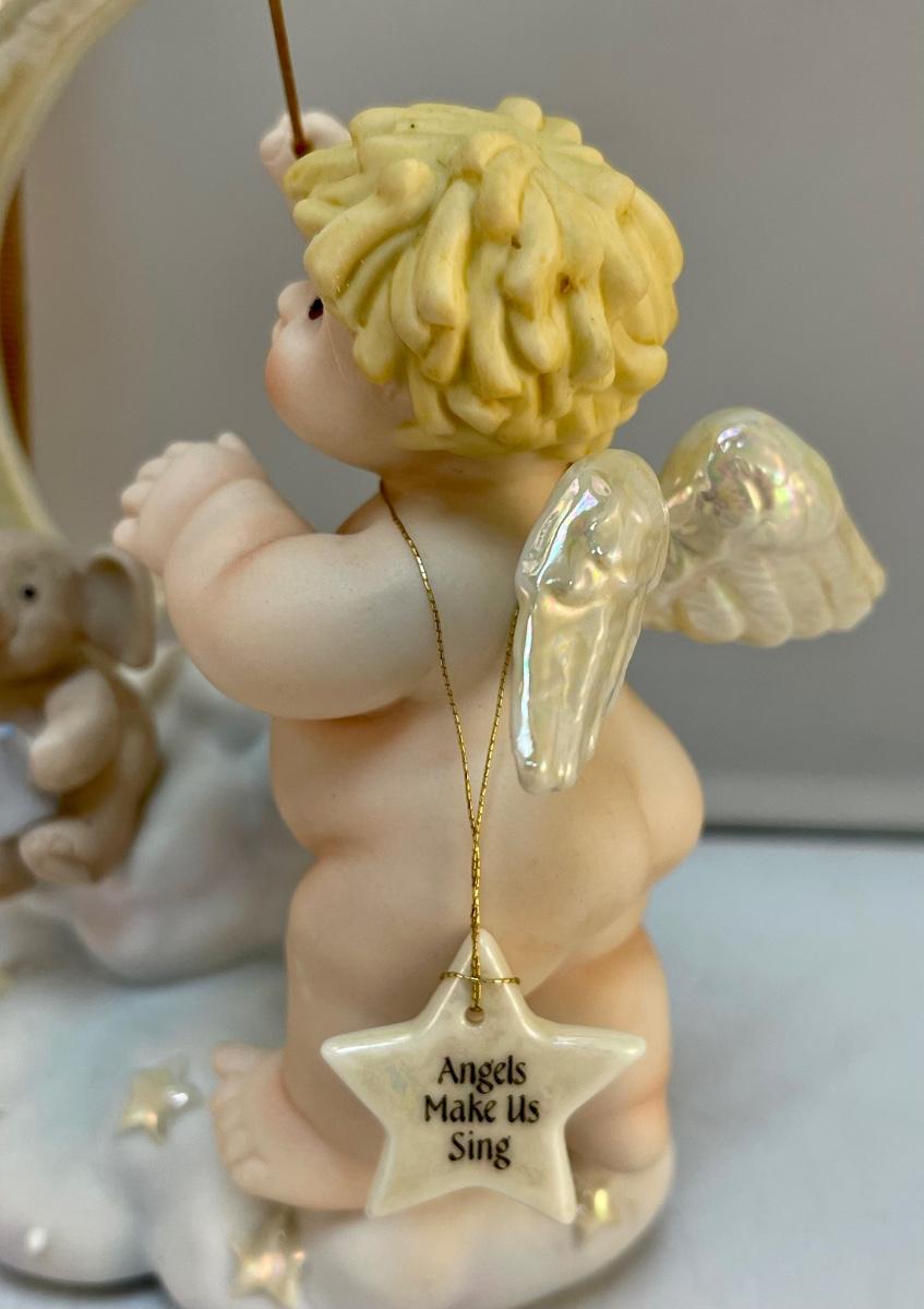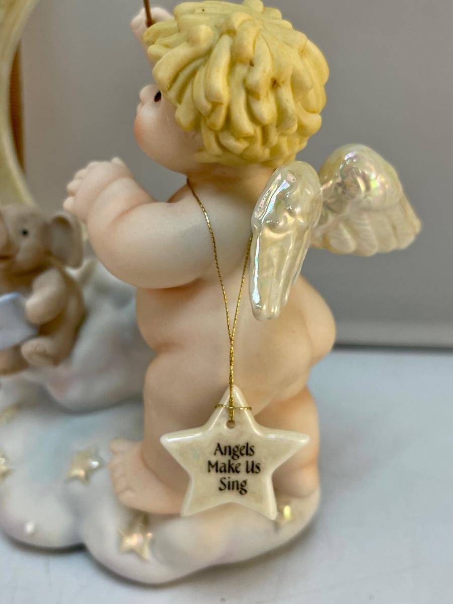 Cute Angel Cherub with Animal Choir on Moon Figurine in Original Box. In good condition.