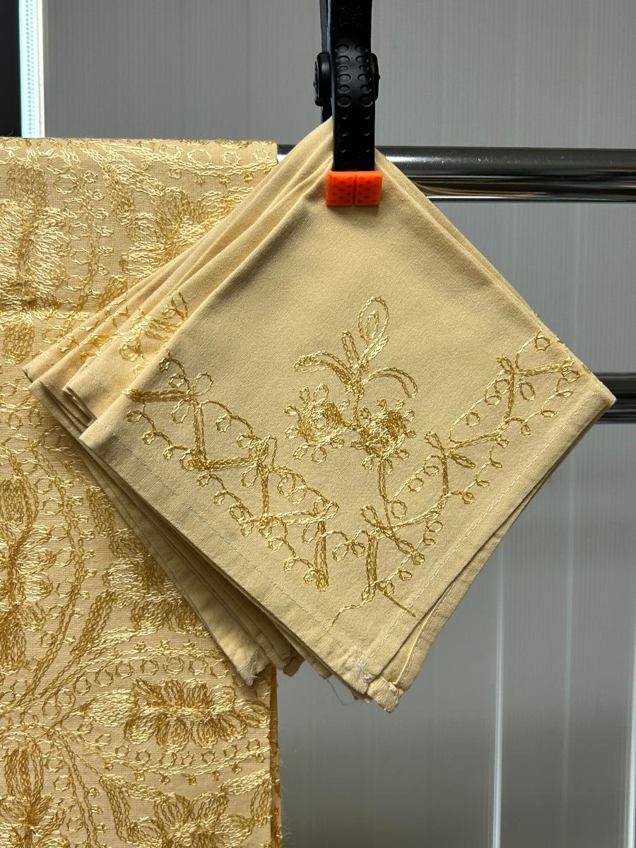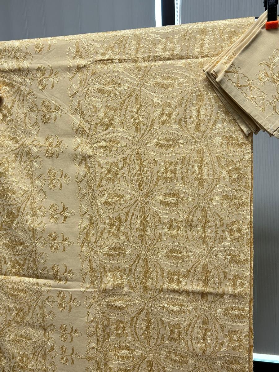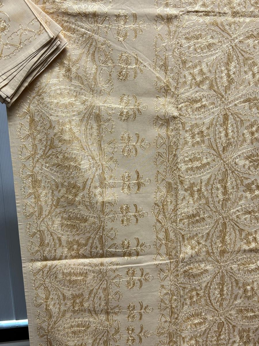 Large Gold on Gold Heavy Embroidery Stitched Pattern Tablecloth and Dinner Napkins