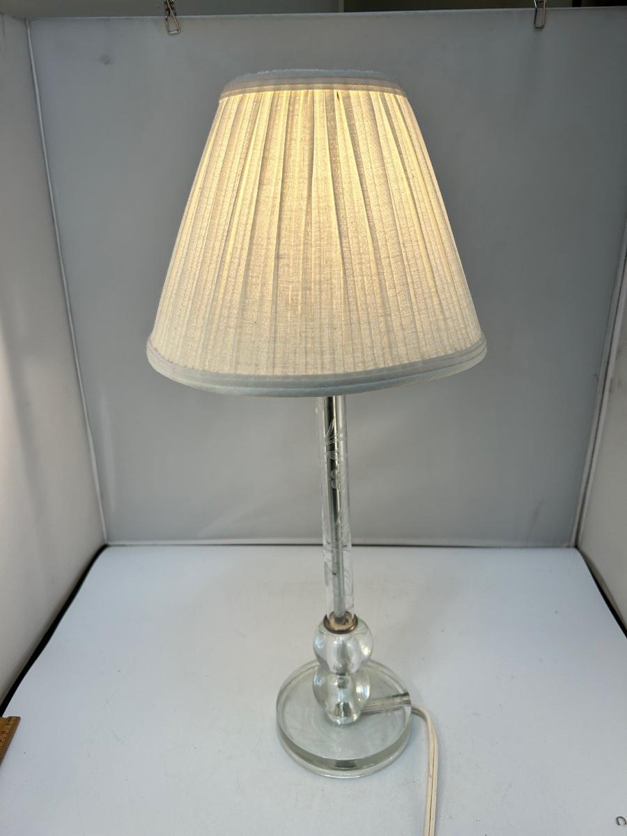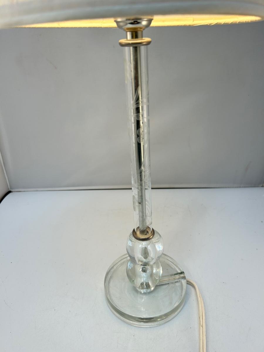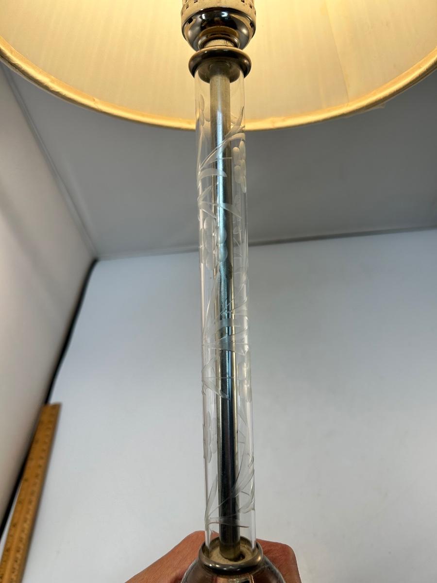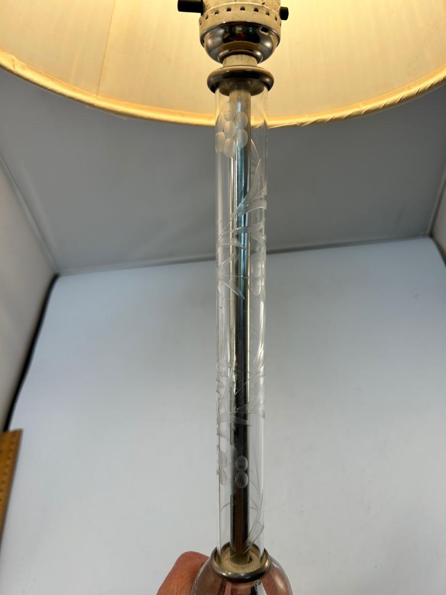 Vintage Retro Cut Flower Etched Slender Table Vanity Reading Lamp with Shade. Works. In good condition.