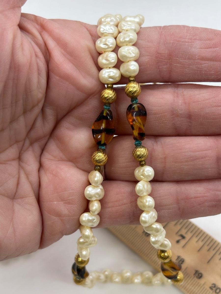 Artificial Faux Freshwater Pearl Beaded Necklace. In good condition. Believe the freshwater pearls are artificial as they are all almost exactly the same.