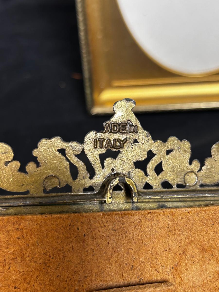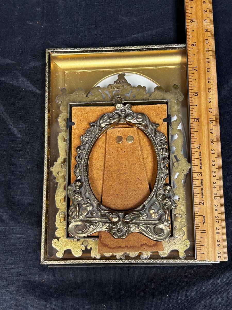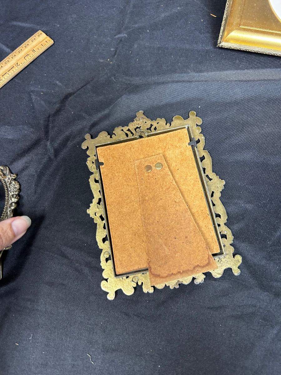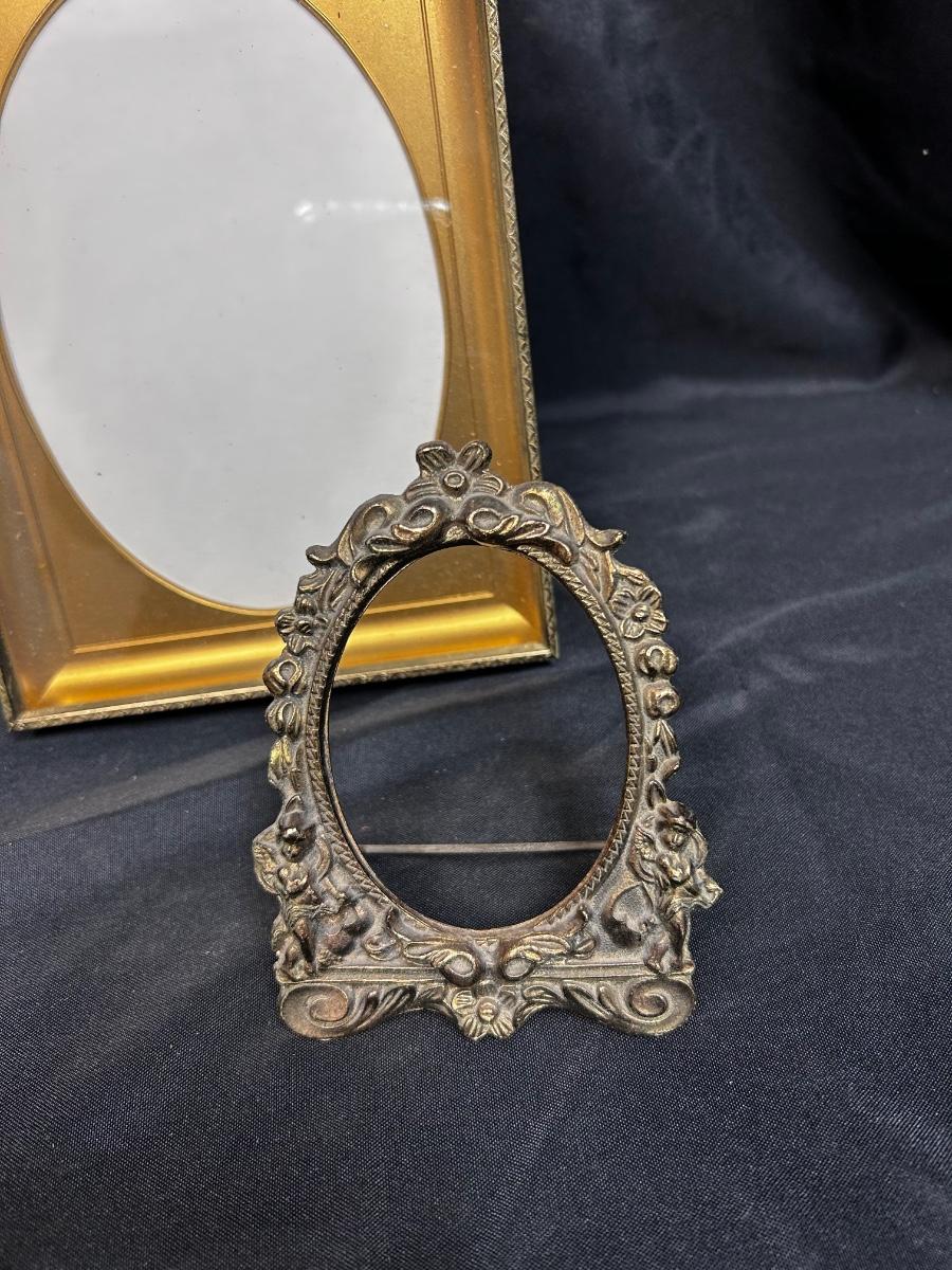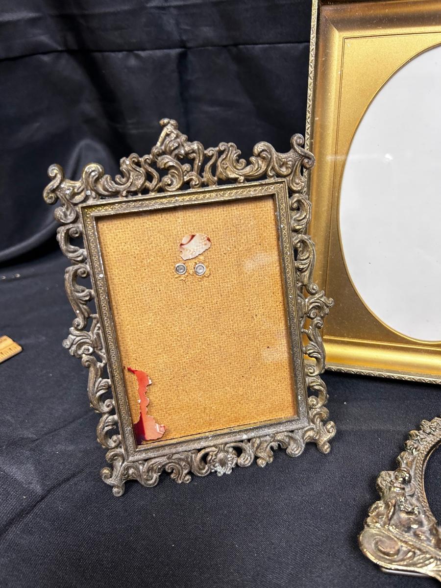 Lot of Three Vintage Photo Picture Frames Gold Brass Tone Metal. In vintage condition. The smallest is missing glass and back piece.