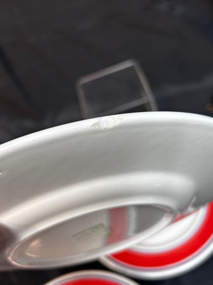 ASA Selection Germany Red Orange Blue Stripe Salad Plates. Stoneware plates, one has small chip on the underside edge.