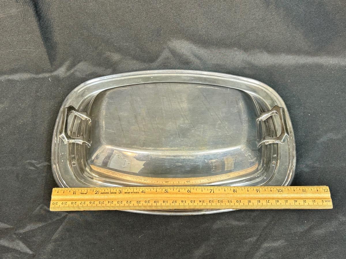 National Silver Plate Lidded Casserole Serving Dish Bowl. Oblong dish in good condition just needs to be polished.