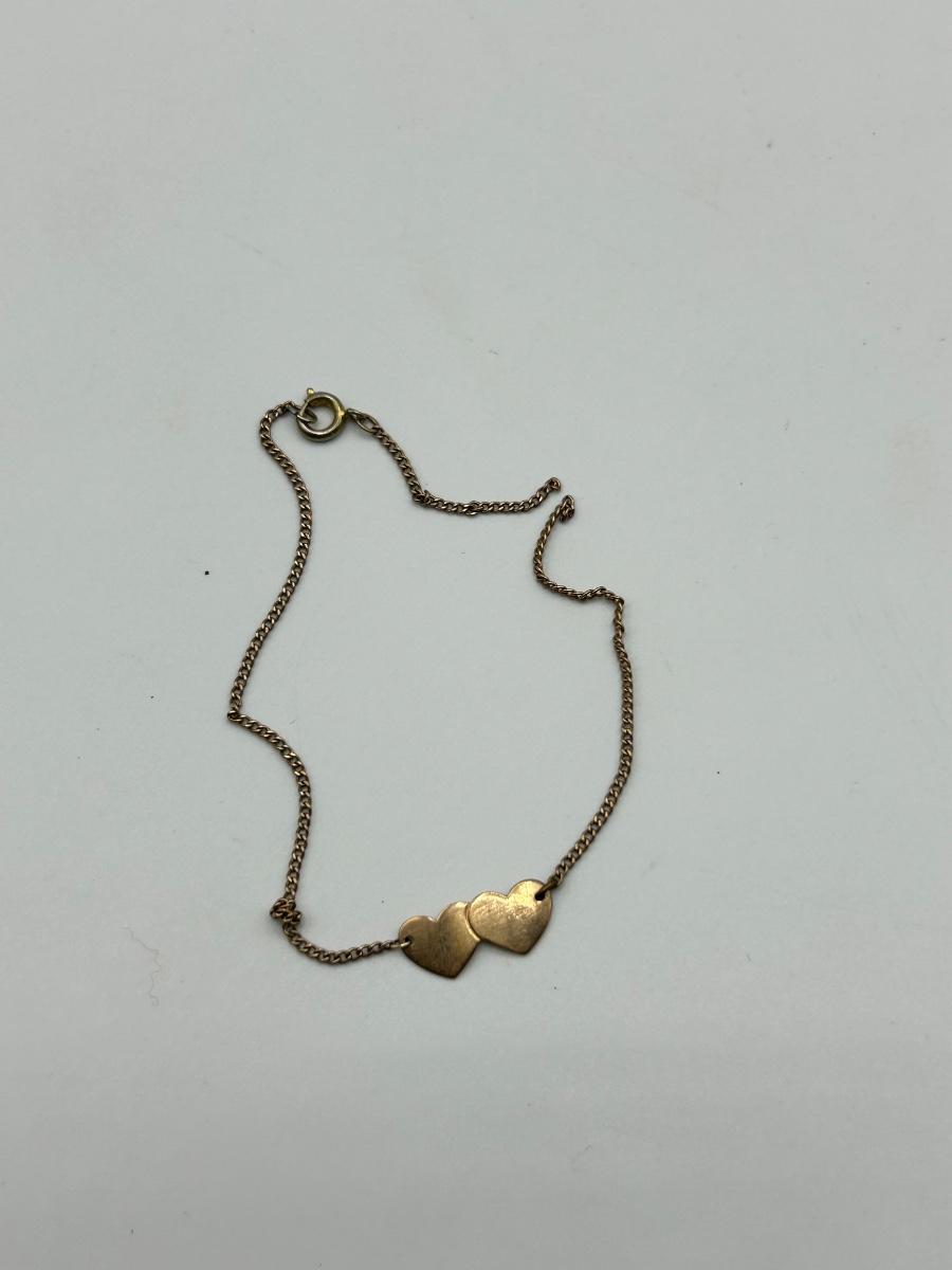 Vintage 10k Yellow Gold Double Heart Bracelet Anklet for Repurpose or Repair