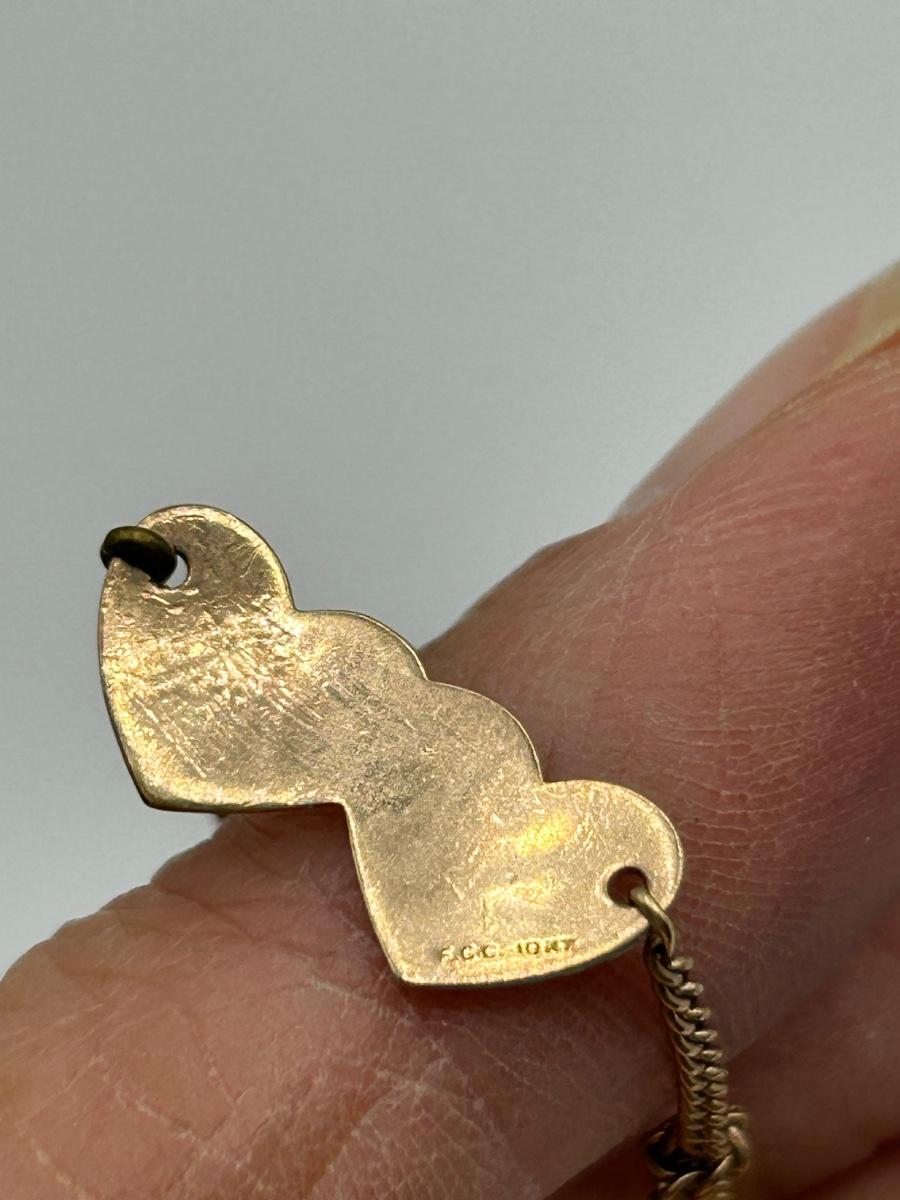 Vintage 10k Yellow Gold Double Heart Bracelet Anklet for Repurpose or Repair. Chain need to be repaired as it is broken. Both chain and hearts seem to be marked 10k.