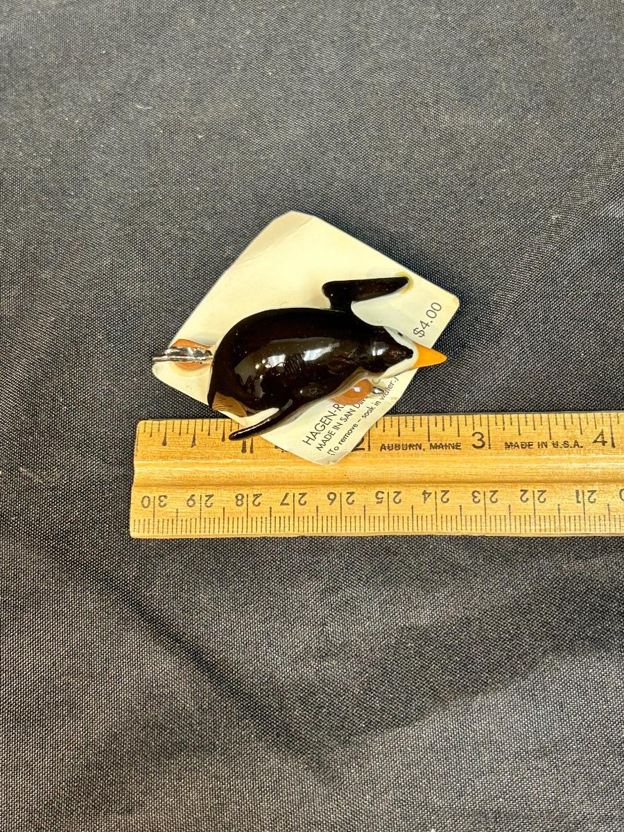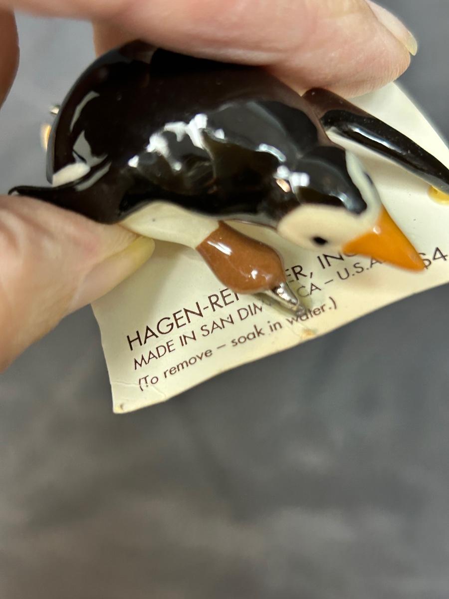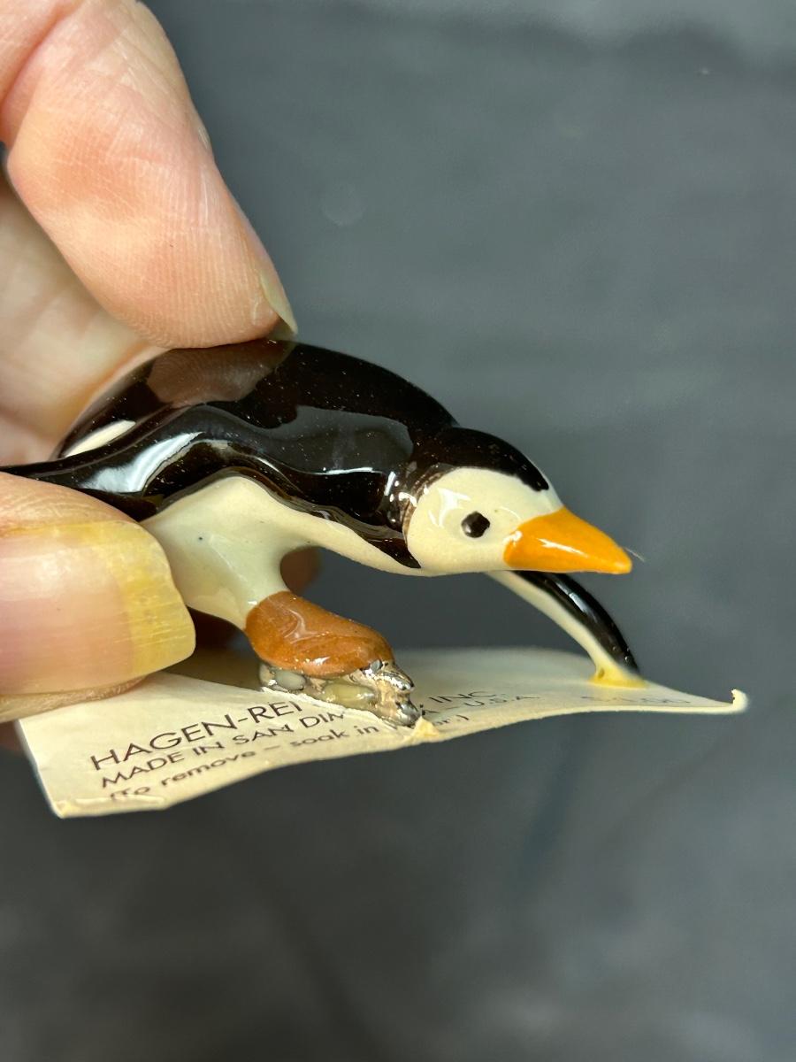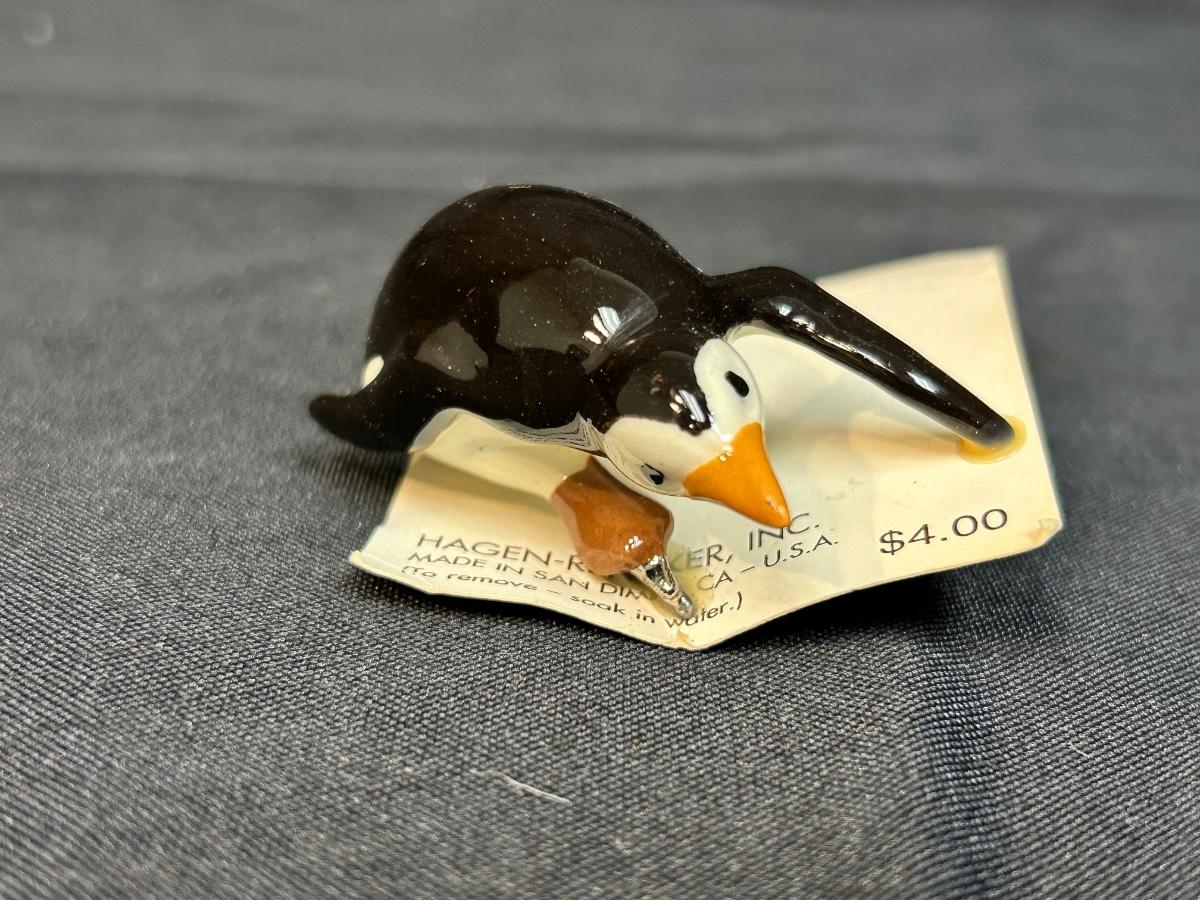 Vintage Hagen-Renaker Ice Skating Penguin on Original Sale Card. In good condition. Card it is attached to is also in good condition. About 2.5" size.