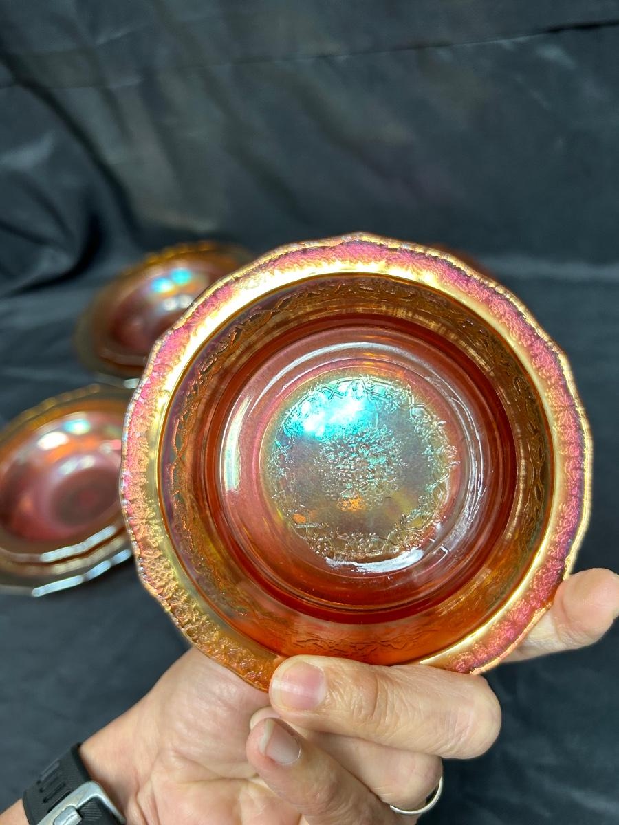 Vintage Marigold Carnival Glass Normandie by Federal Glass Fruit Dessert Bowls Two Sizes