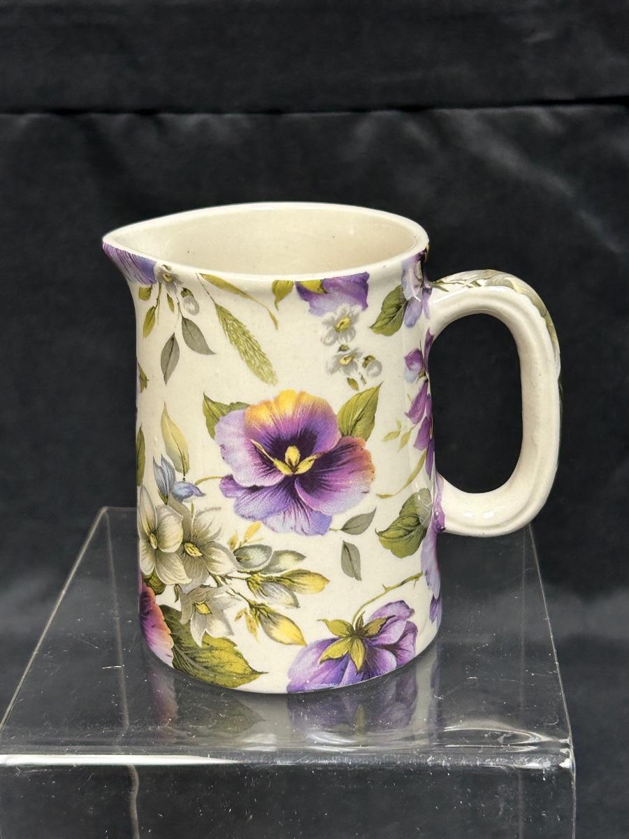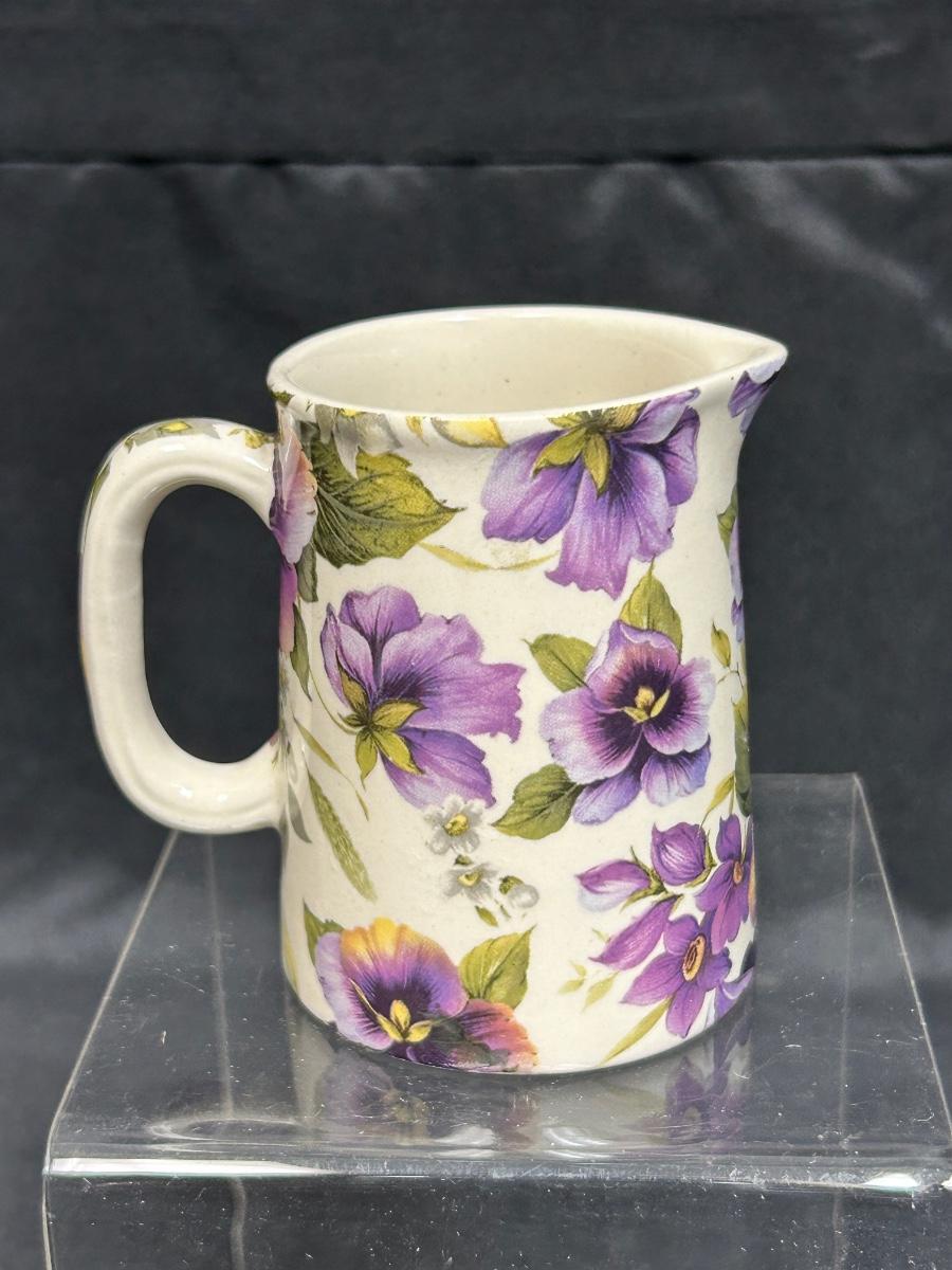 Heron Cross Pottery Purple Pansy Violet Flower Chintz Cream Pitcher