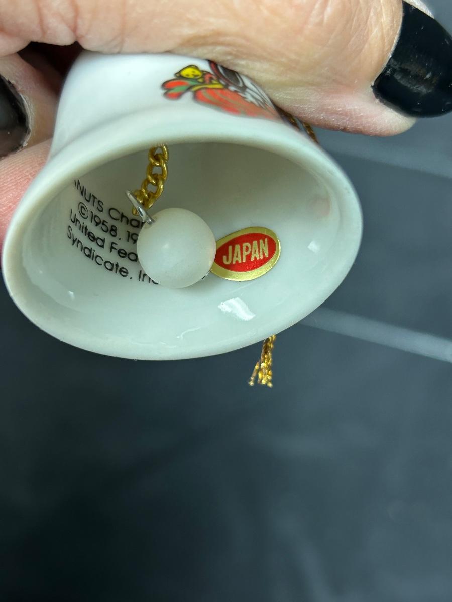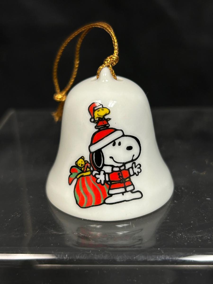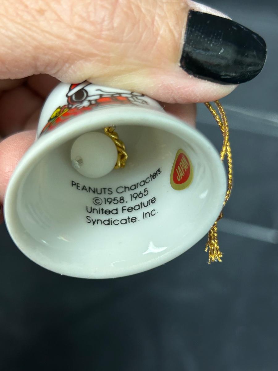 Miniature Retro Snoopy and Woodstock Christmas Holiday Bell Ornament 1965