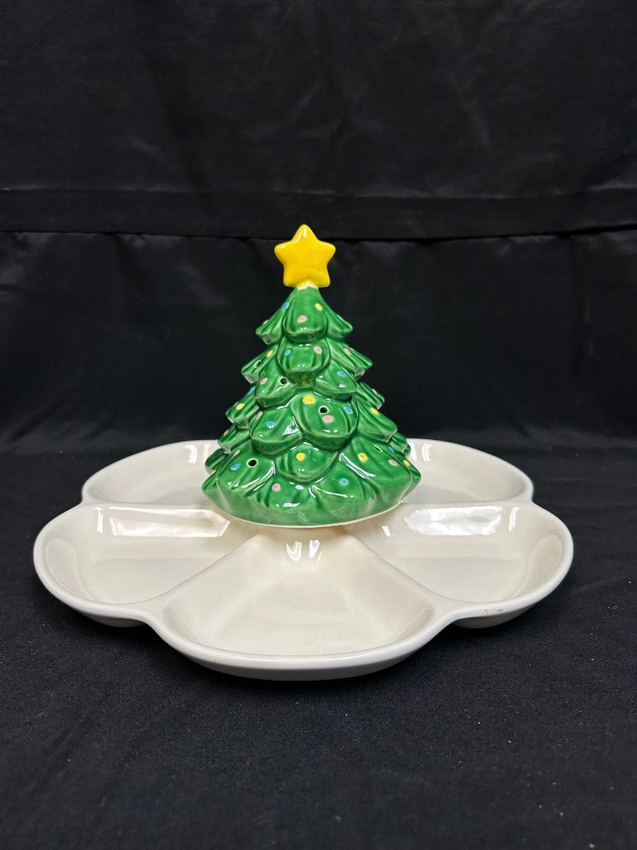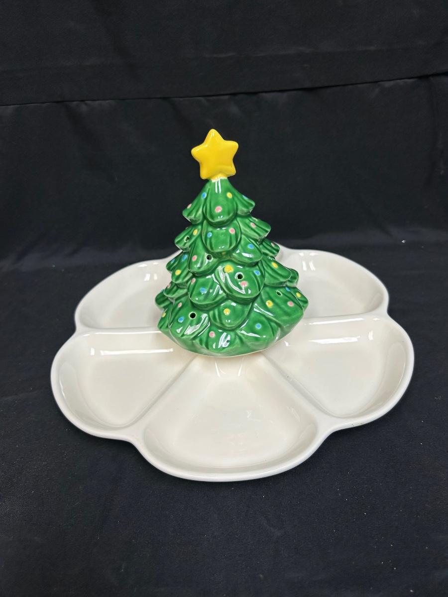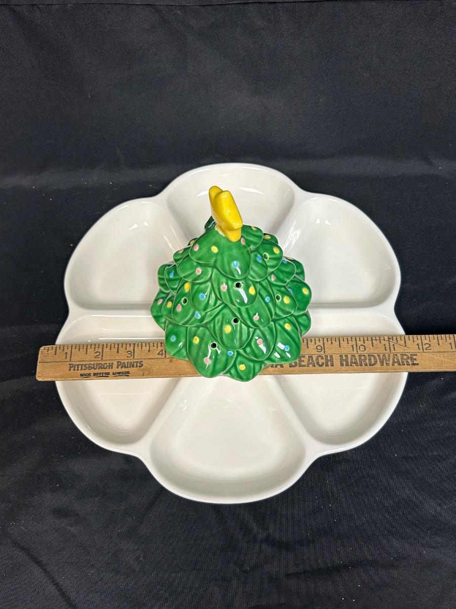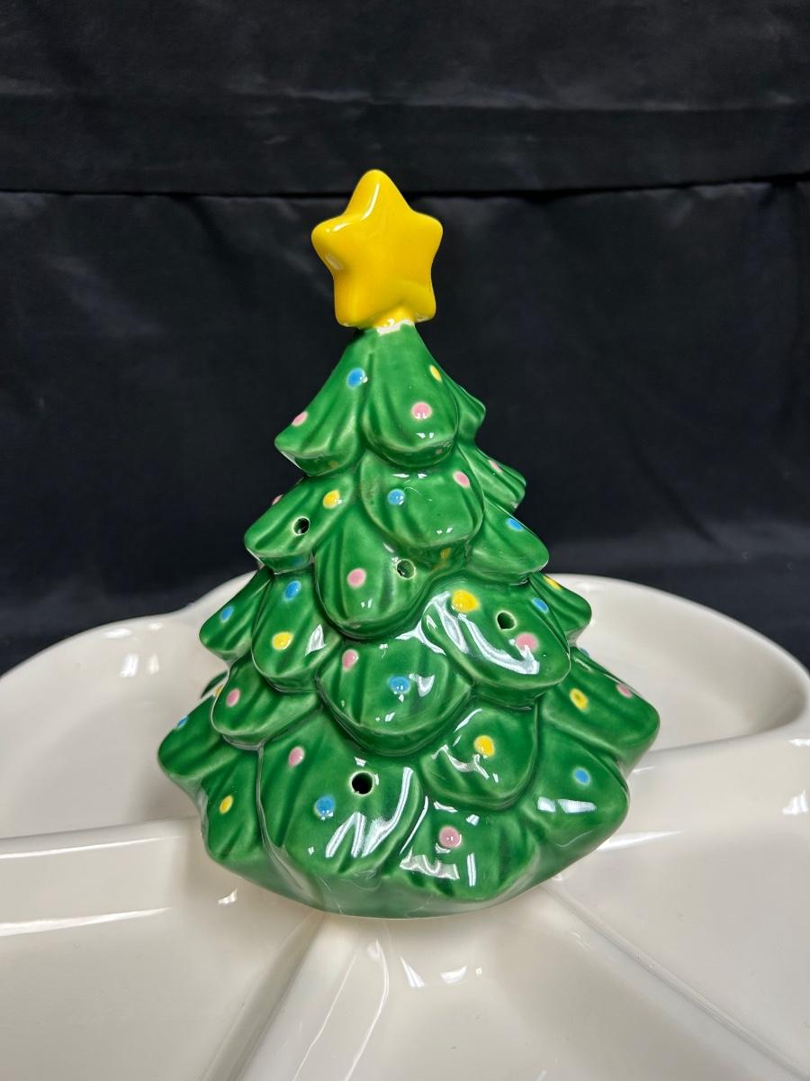Enesco Musical Wind-Up Christmas Tree Holiday Serving Dish Divided Platter We Wish You a Merry Christmas