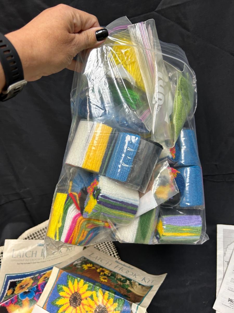 Set of Latch Hook Craft Kits Open Package Partially Completed
