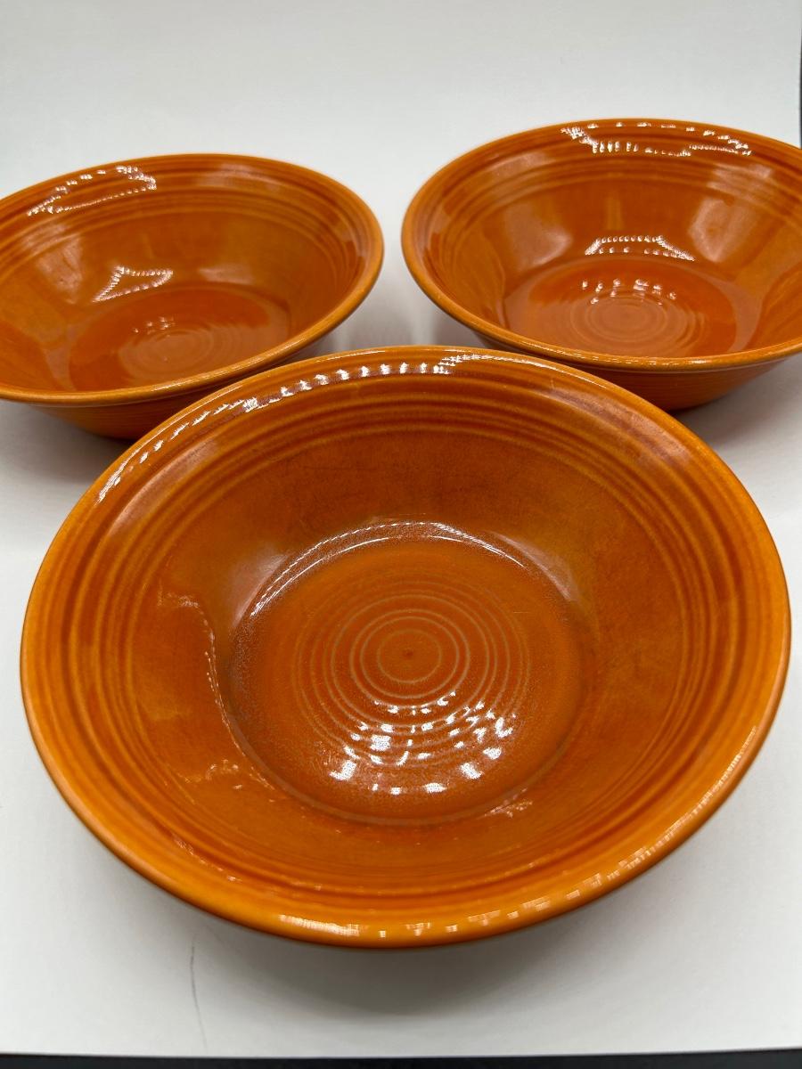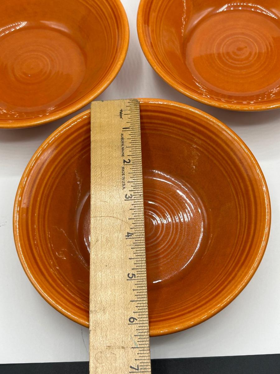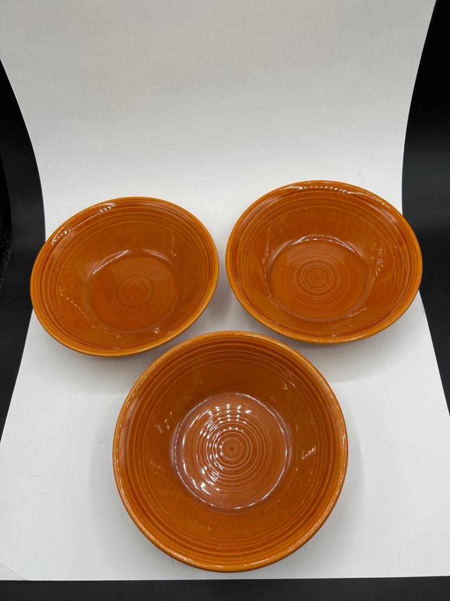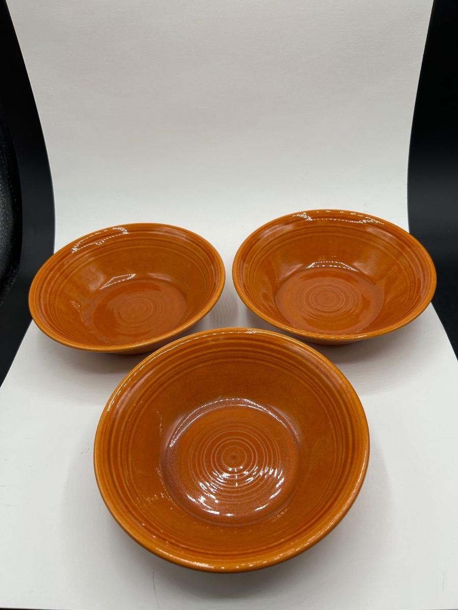 Set of Three Metlox Colorstax Terra Cotta Orange Cereal Bowls California Pottery. In good condition.