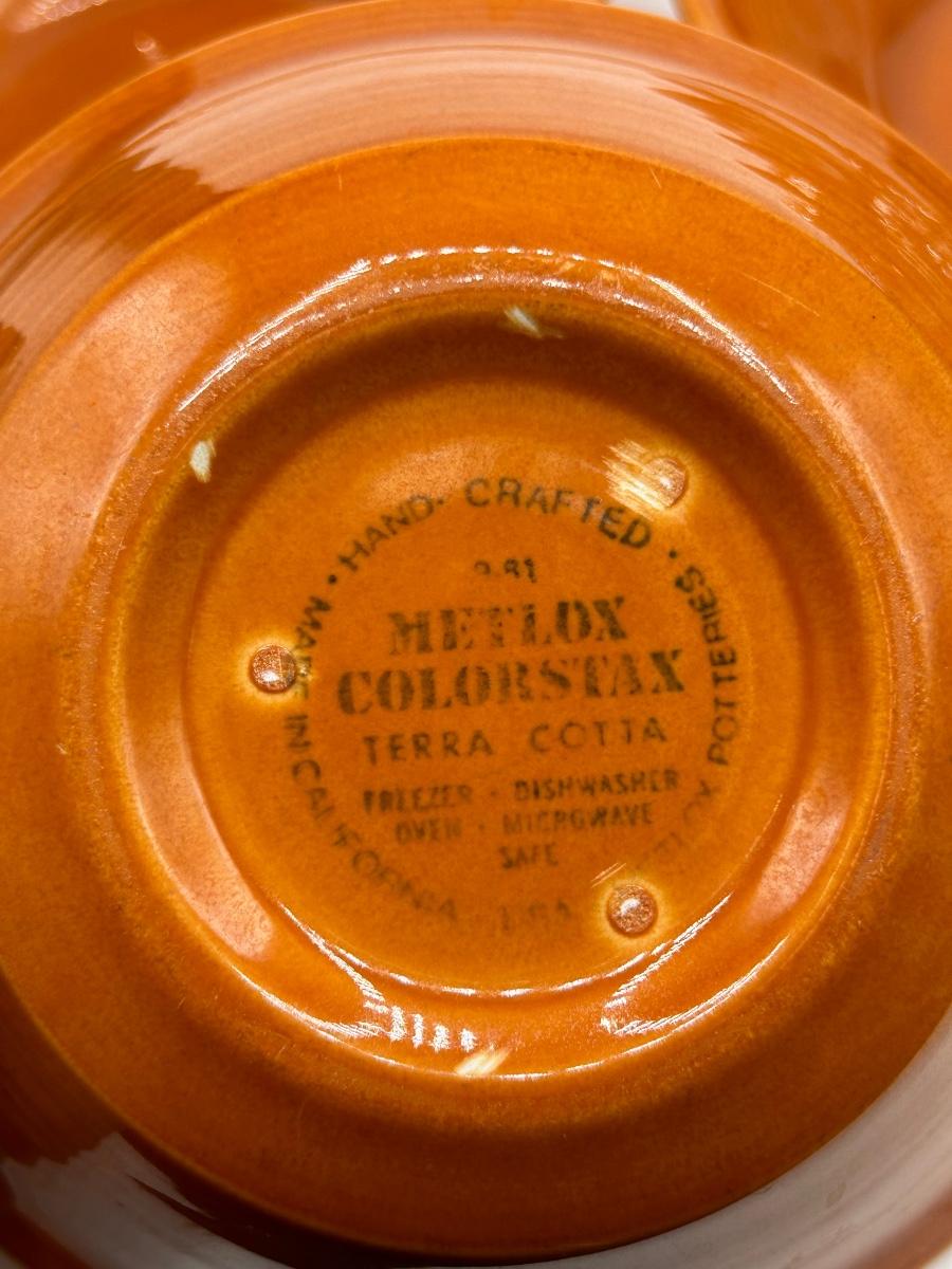 Set of Three Metlox Colorstax Terra Cotta Orange Cereal Bowls California Pottery