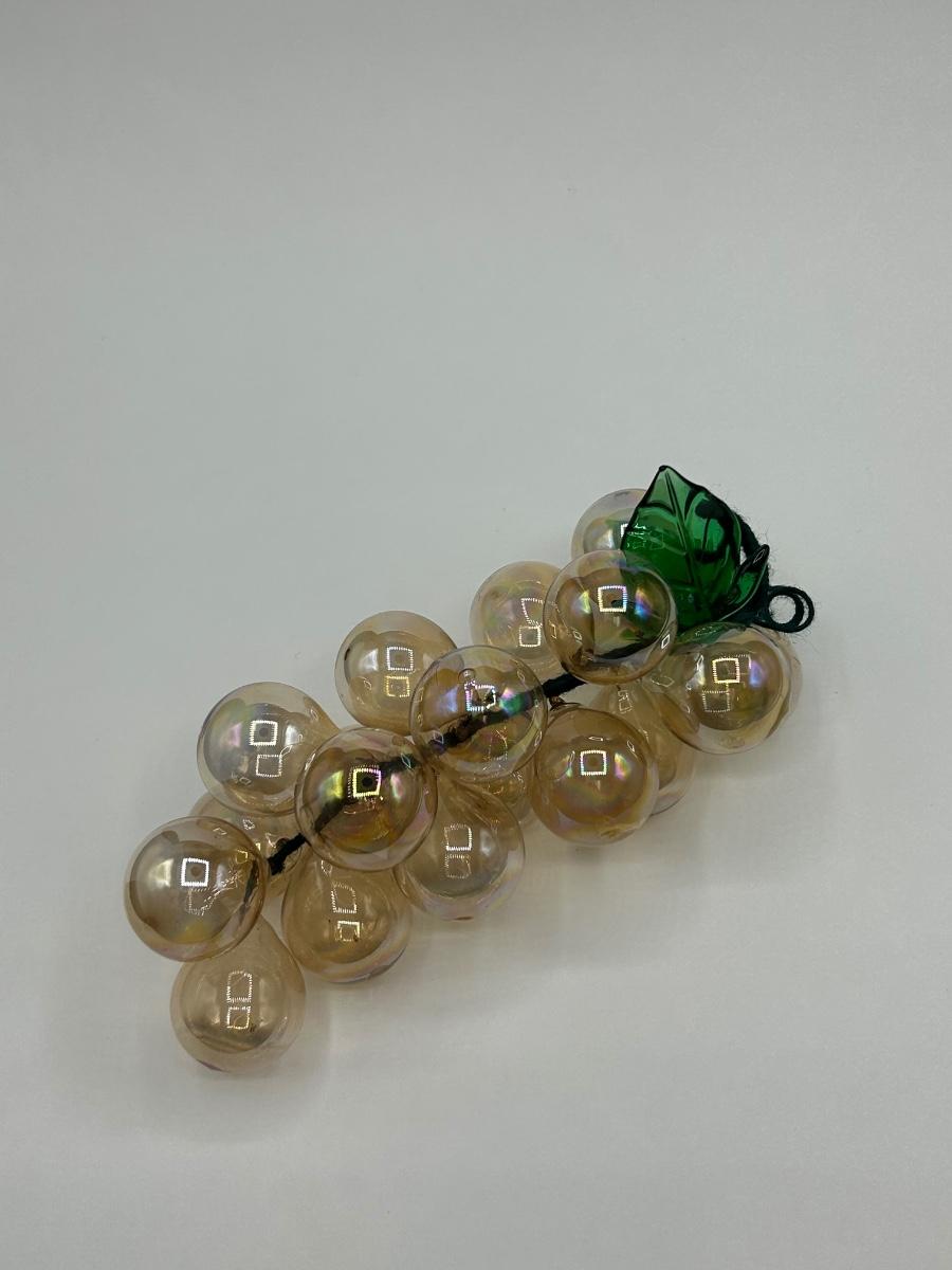 Iridescent Pale Amber Colored Blown Glass Grape Cluster Bunch