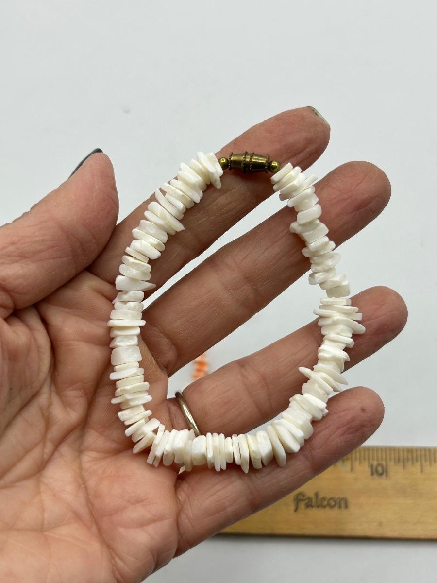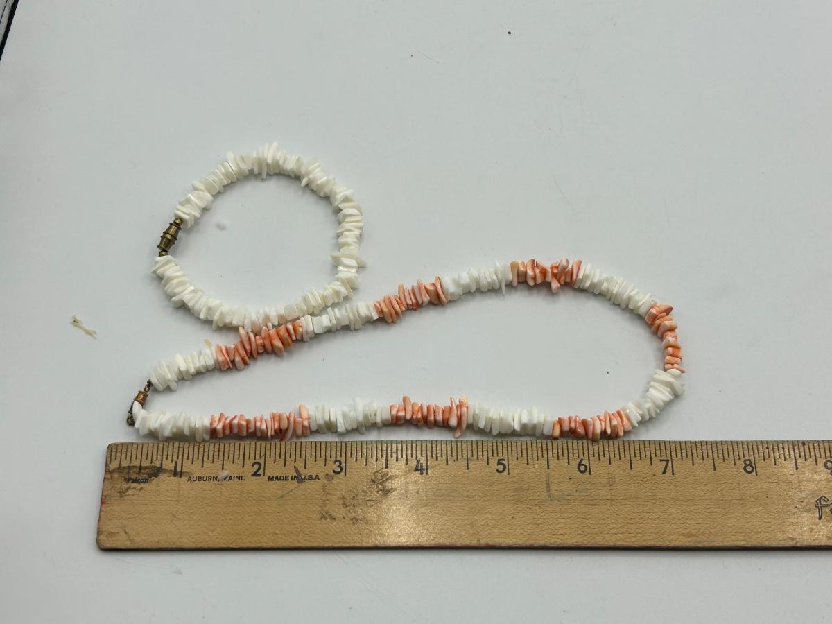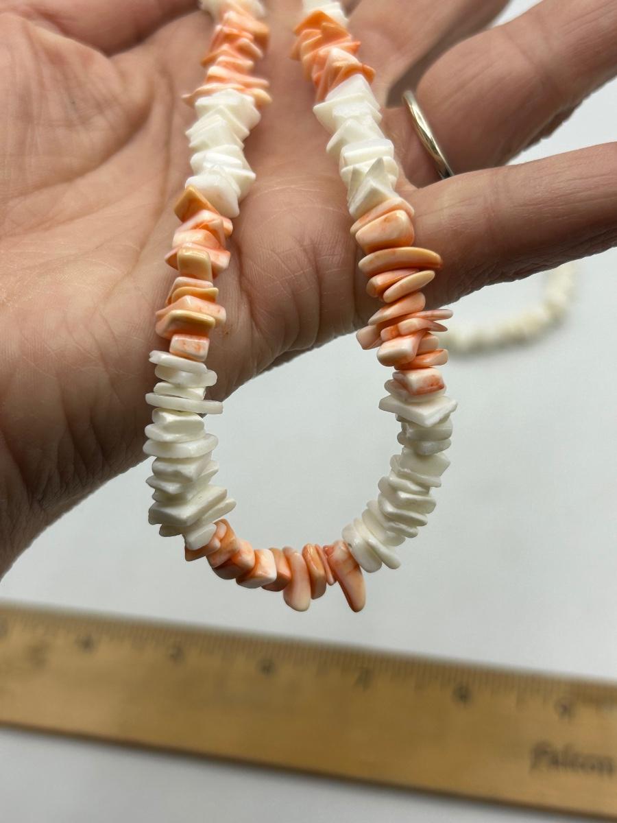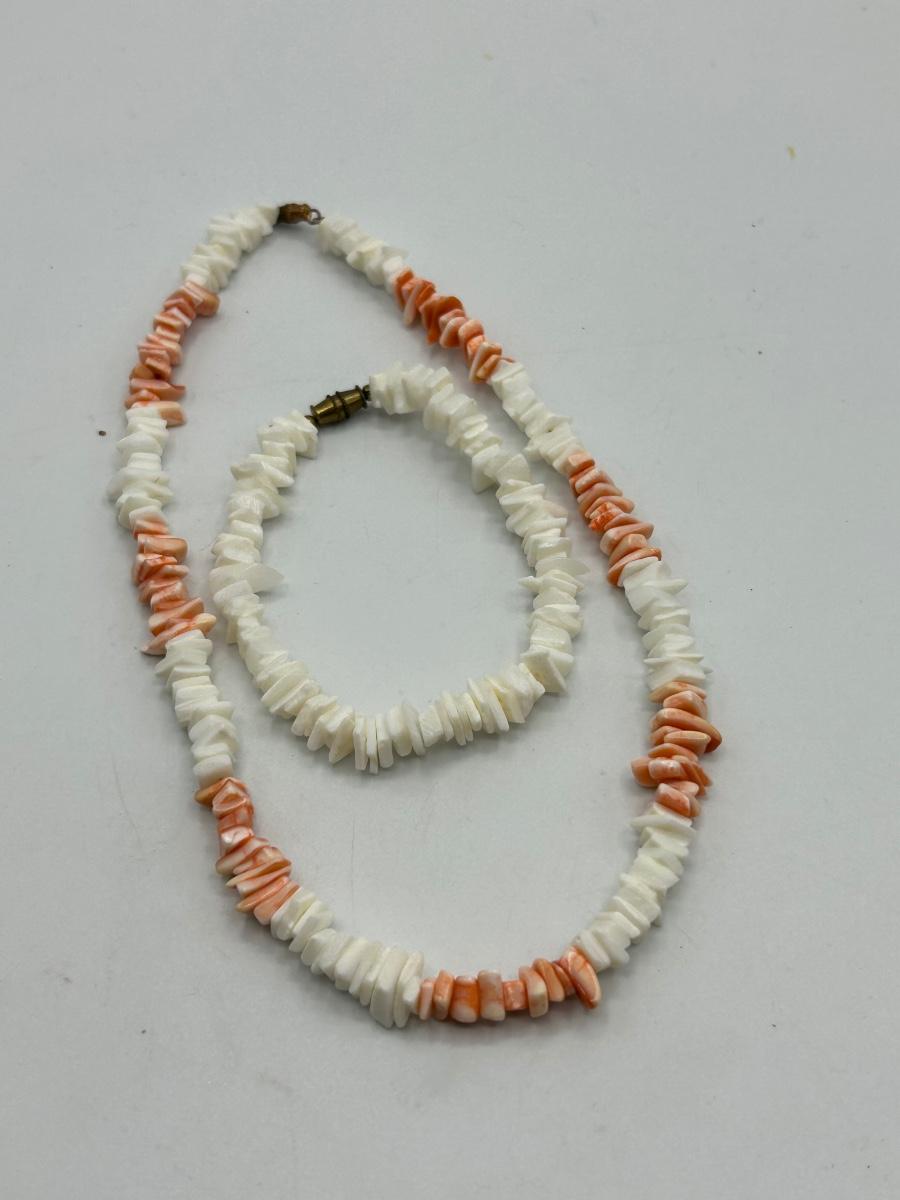 Pukka Shell Jewelry Set Necklace and Bracelet White and Peach. Both are in good condition.