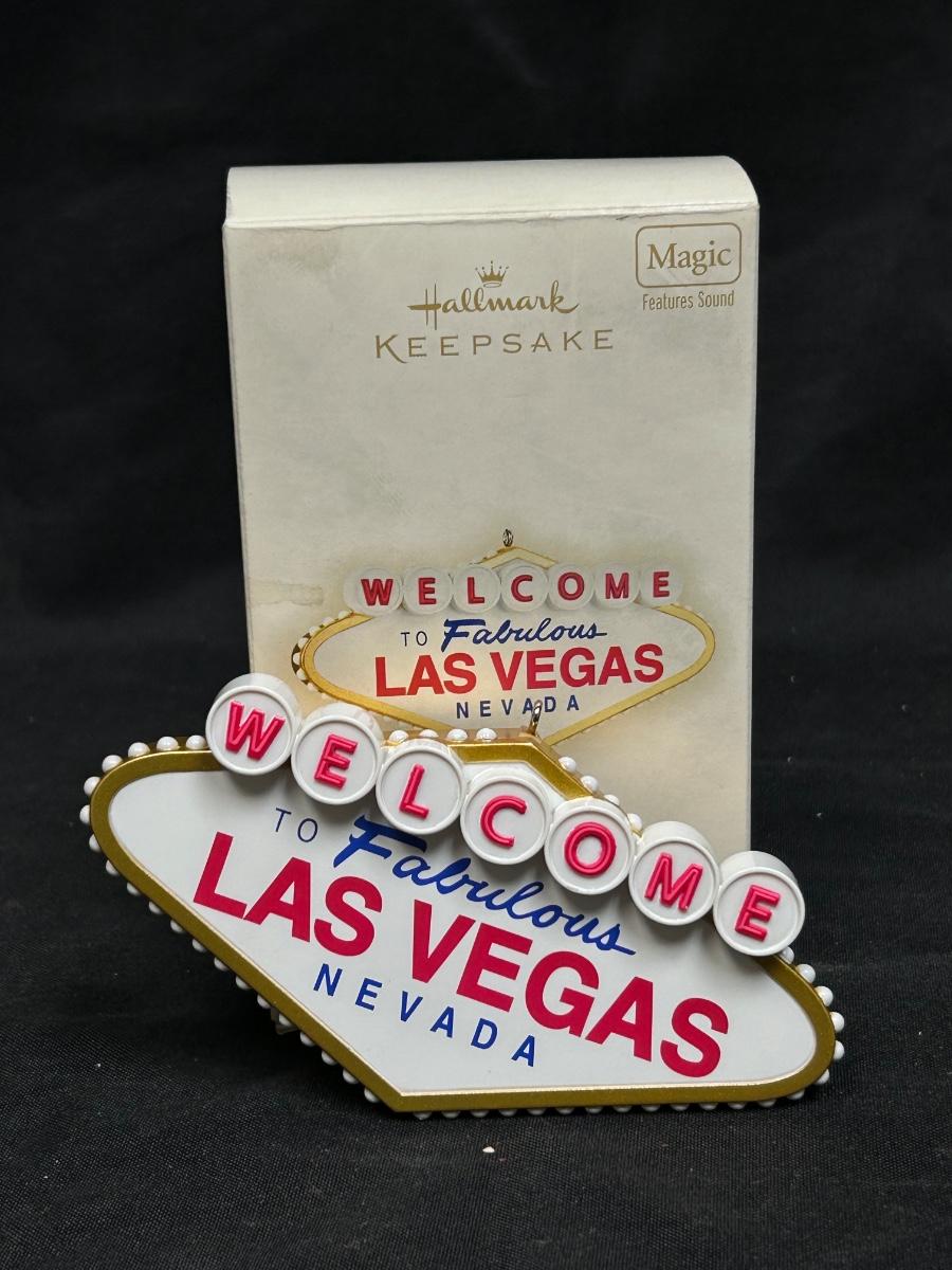Welcome to Fabulous Las Vegas Hallmark Keepsake Christmas Holiday Tree Ornament. In good condition. Comes with batteries as it makes sound. Unsure of the battery quality because of age.