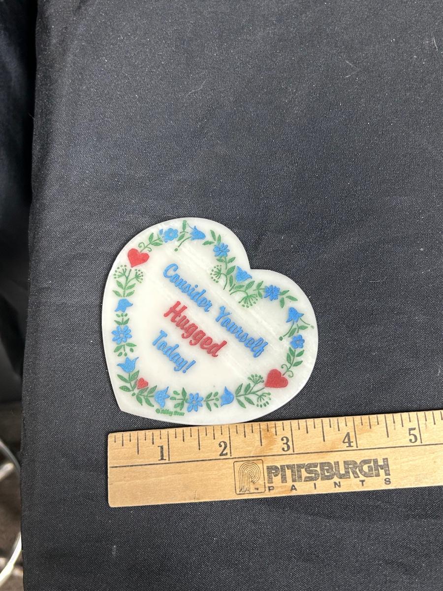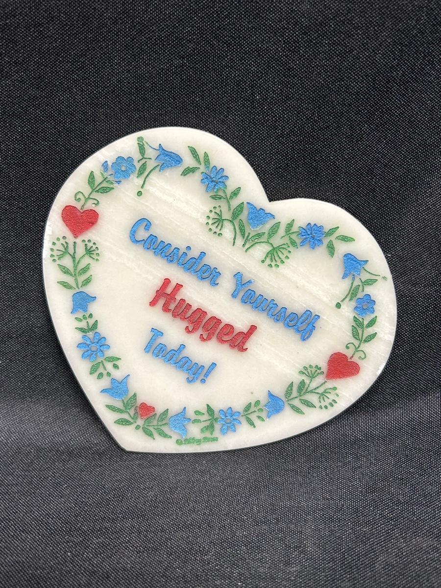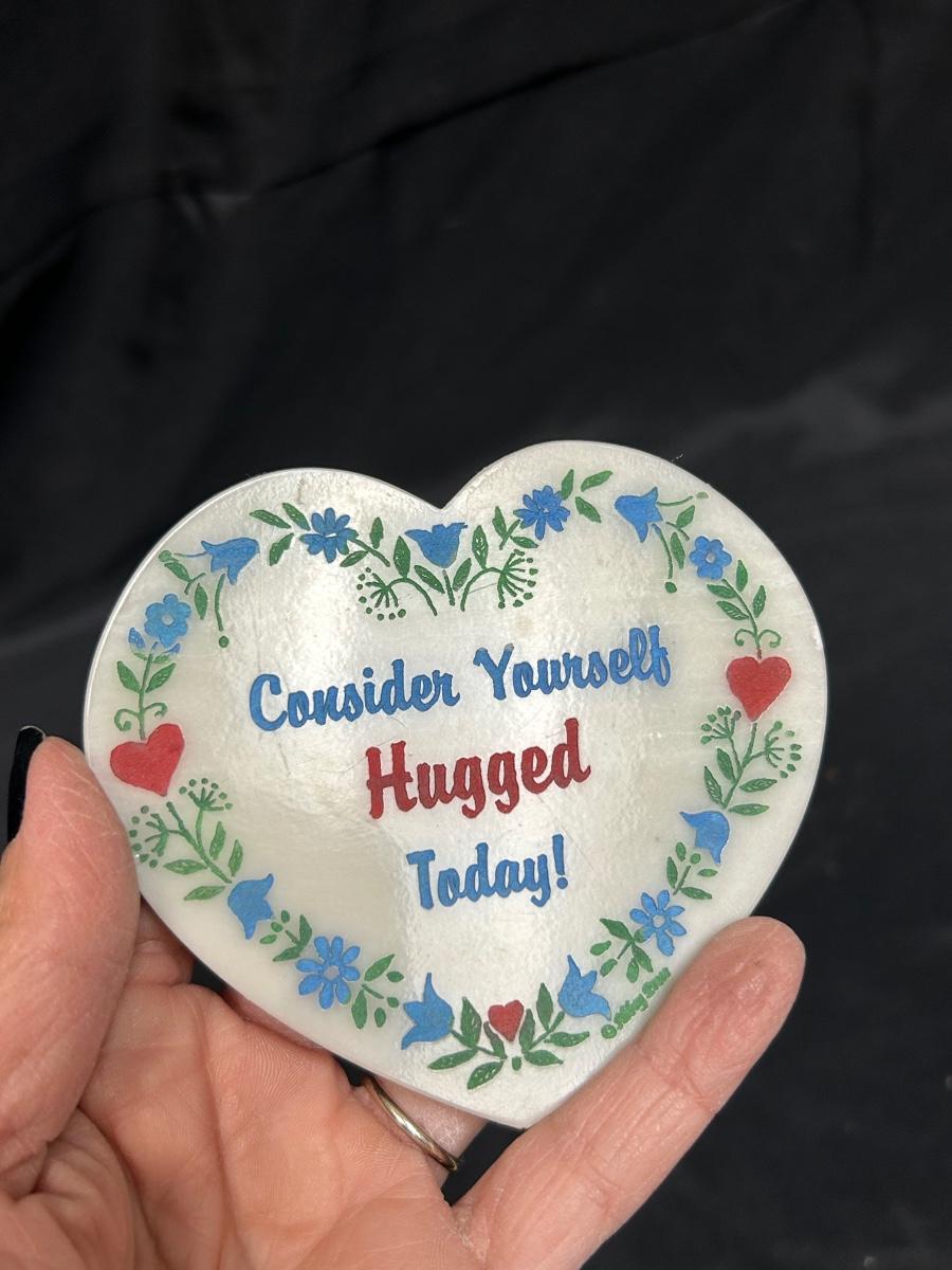 Consider Yourself Hugged Today Resin Plastic Heart Plaque. In good condition. Felted back. Under 4' size.