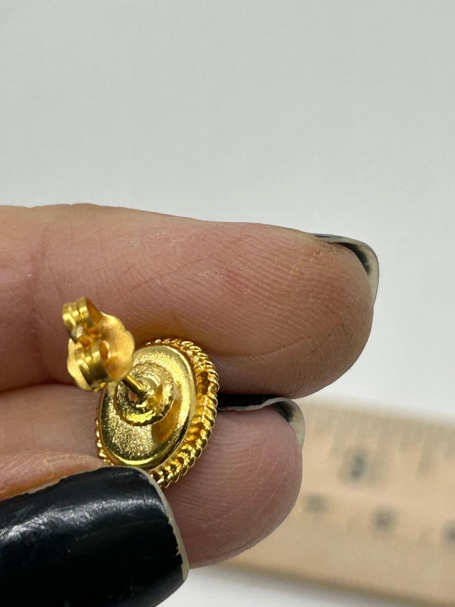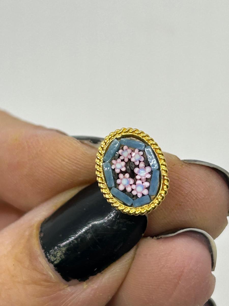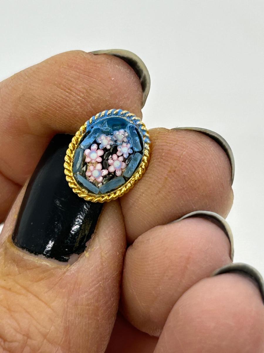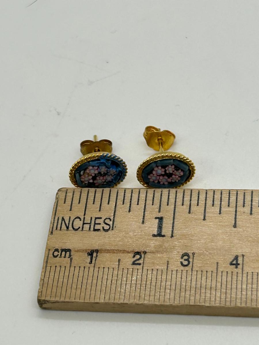 Vintage Flower Floral Mosaic Inlaid Oval Earrings for Pierced Ears. in good vintage condition. One is missing some of the stone mosaic inlay.
