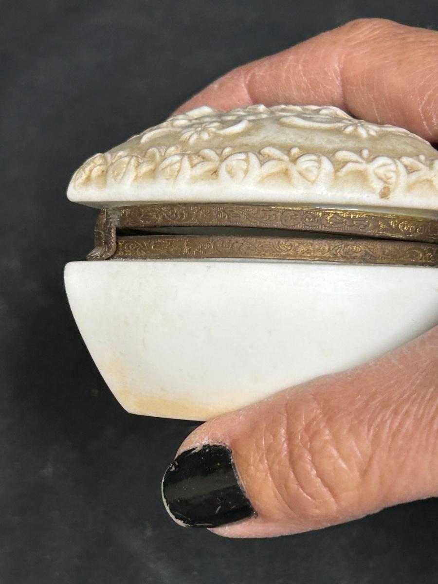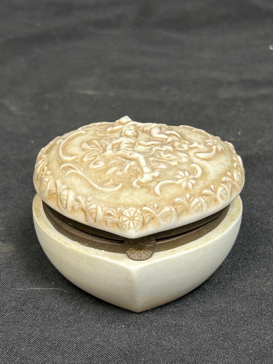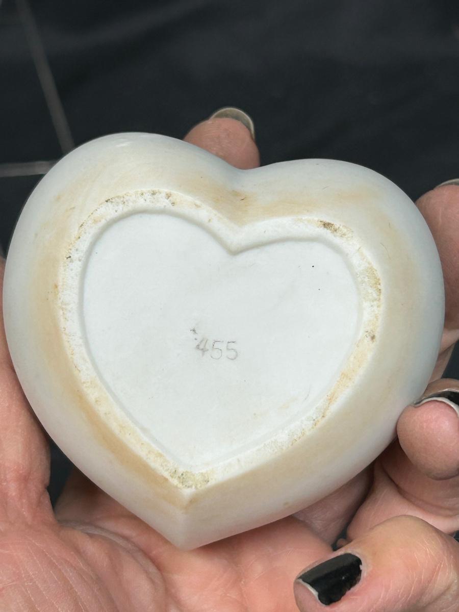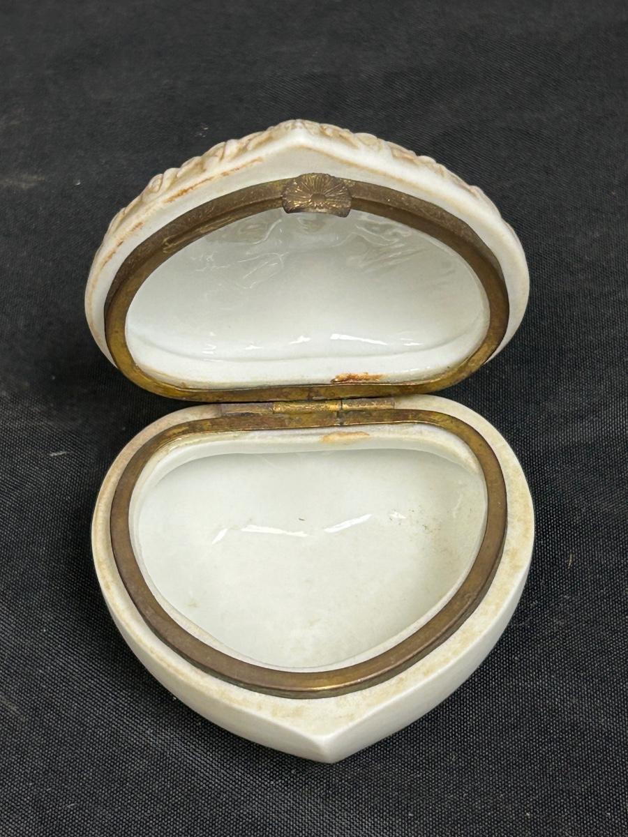 Vintage Bisque Porcelain Heart Shaped Trinket Box with Cherubs on Top