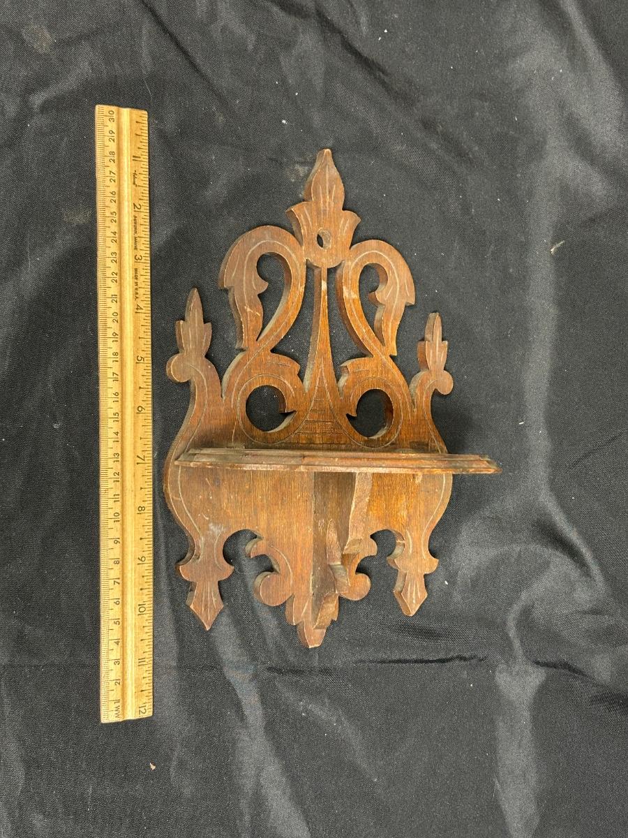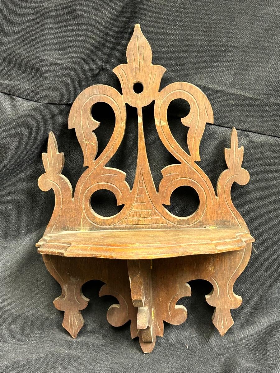 Vintage Small Scrolled Wood Folding Wall Display Shelf