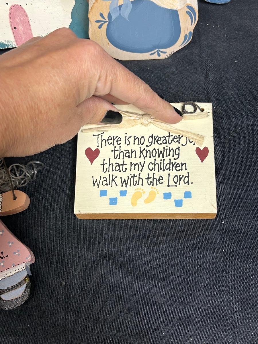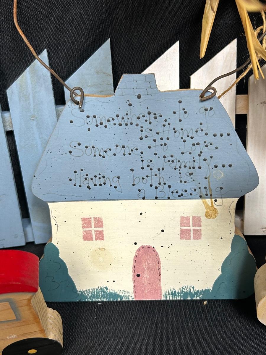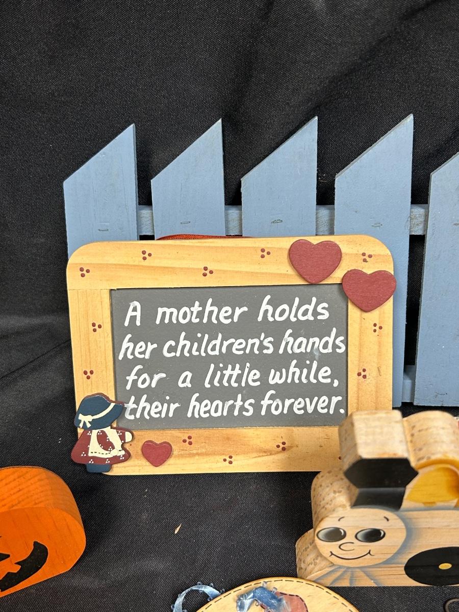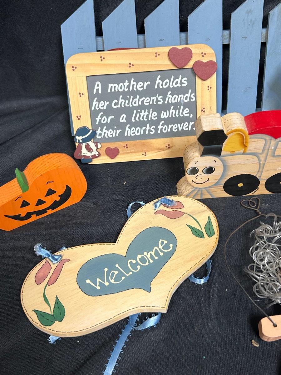 Mixed Lot of Folk Art Hand Painted Woodcraft Decor. Cute little wood craft art pieces. Great for repurpose or display.