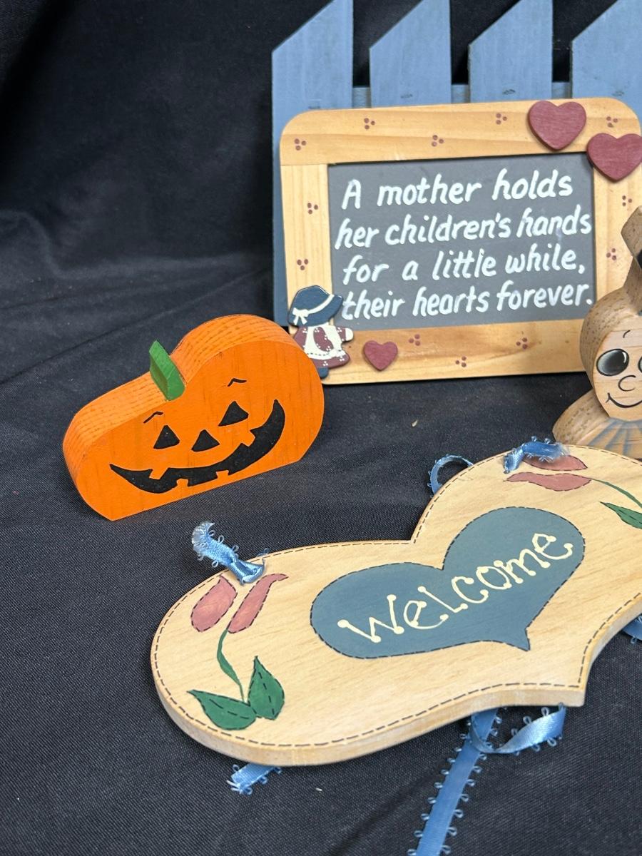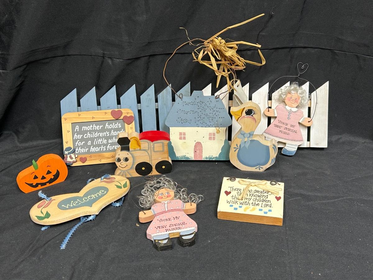 Mixed Lot of Folk Art Hand Painted Woodcraft Decor