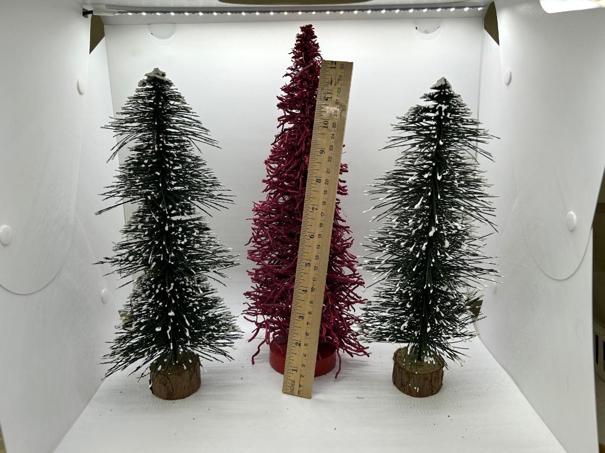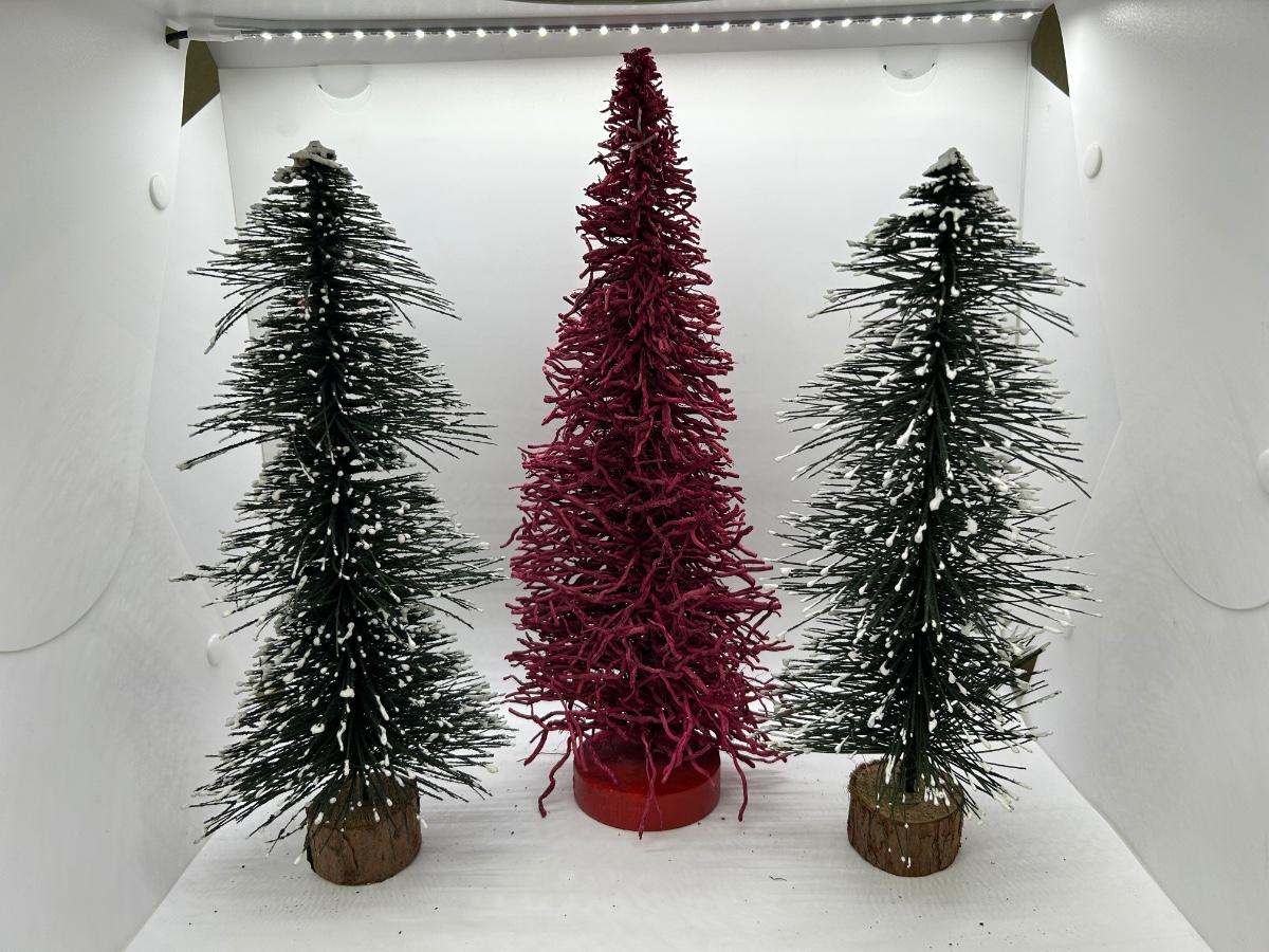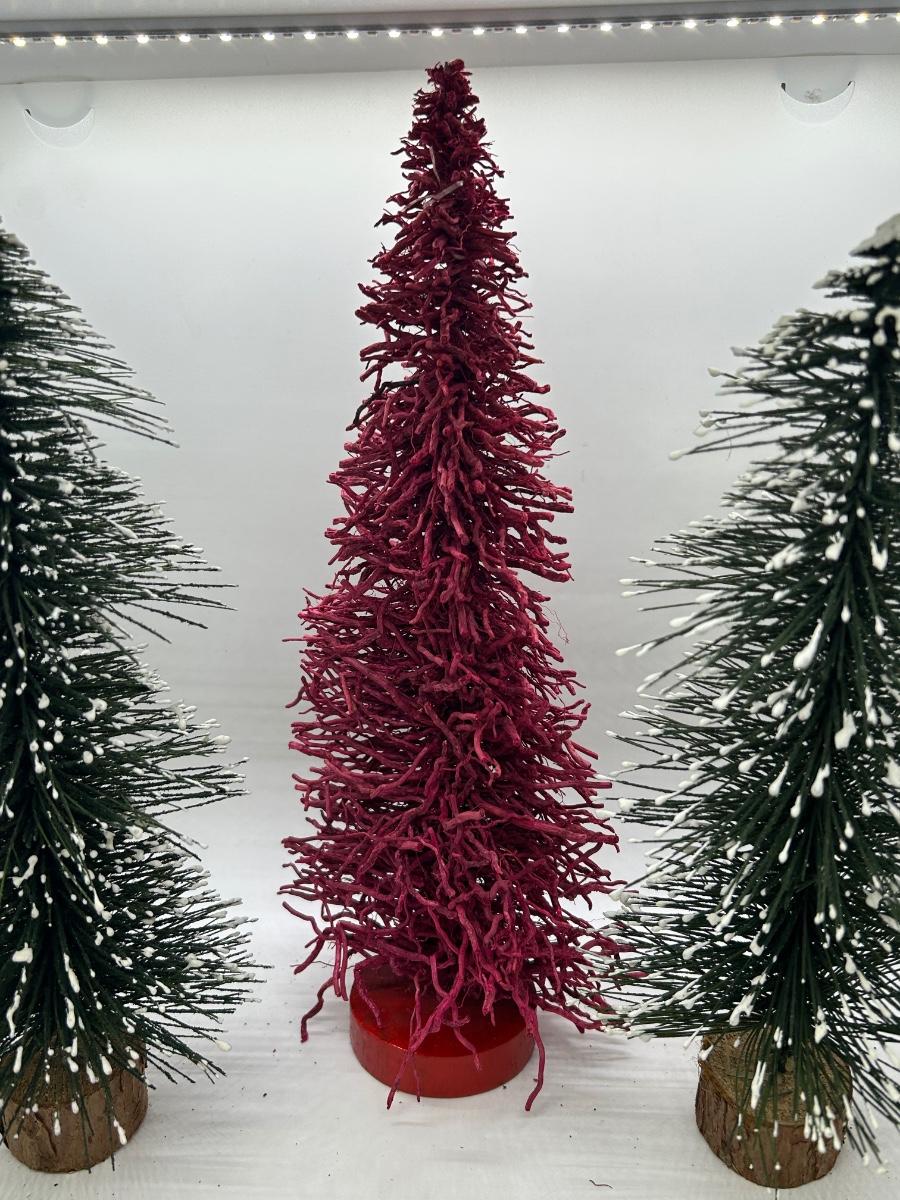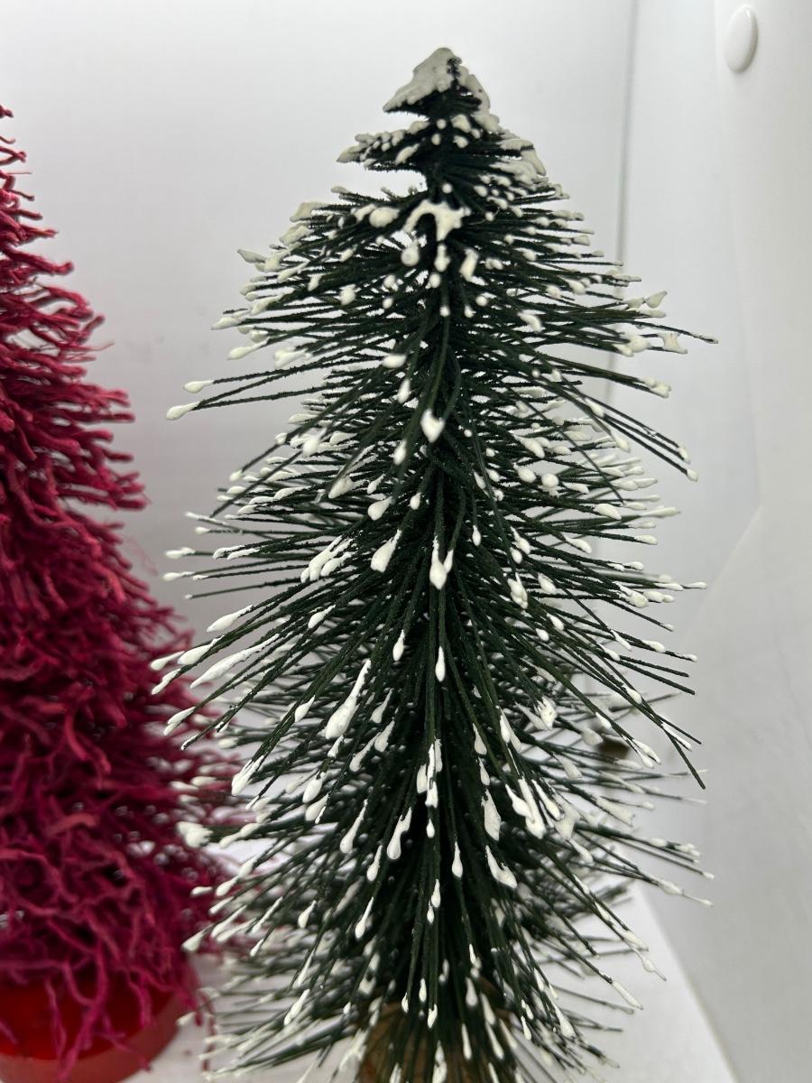 Lot of Snowy Natural Wild Green & Festive Holiday Red Home Decor Faux Pine Tree